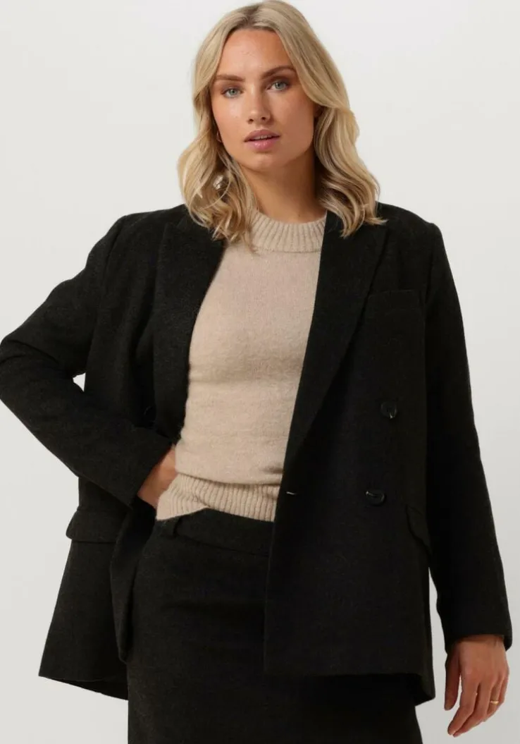 De JAIME BLAZER van SECOND FEMALE is een must-have voor dames die op zoek zijn naar een stijlvolle toevoeging aan hun garderobe. Deze donkergrijze blazer is perfect voor elke gelegenheid. Combineer hem met een witte blouse en een jeans voor een casual-chique look, of draag hem over een jurk voor een meer formele uitstraling. Met de blazer straal je zelfvertrouwen en klasse uit. Voeg dit tijdloze kledingstuk toe aan je collectie en creëer eindeloze outfits.