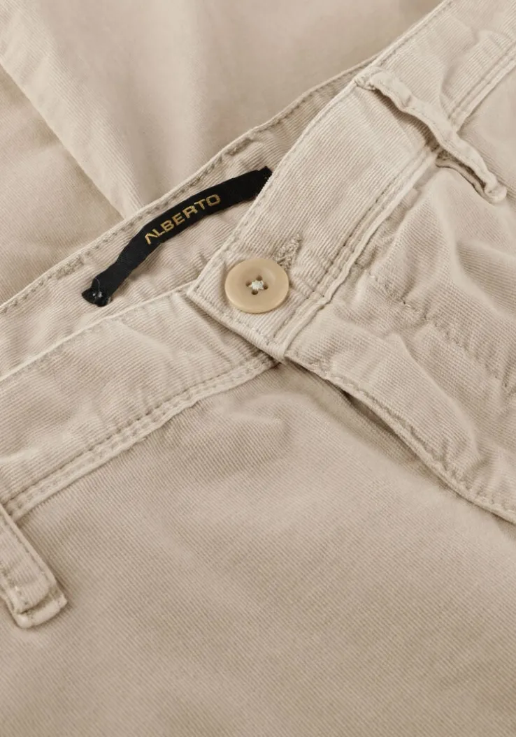 Met de ALBERTO 6287 1828 ROB chino in ecru kleur ben jij helemaal on-trend. Deze broek is gemaakt van katoen, waardoor hij comfortabel zit en perfect is voor dagelijks gebruik. De corduray print maakt dit model trendy en door de makkelijke kleur past dit item overal bij! Combineer deze chino met een casual T-shirt en sneakers voor een relaxte look. Of draag hem met een net overhemd en loafers voor een meer geklede outfit!