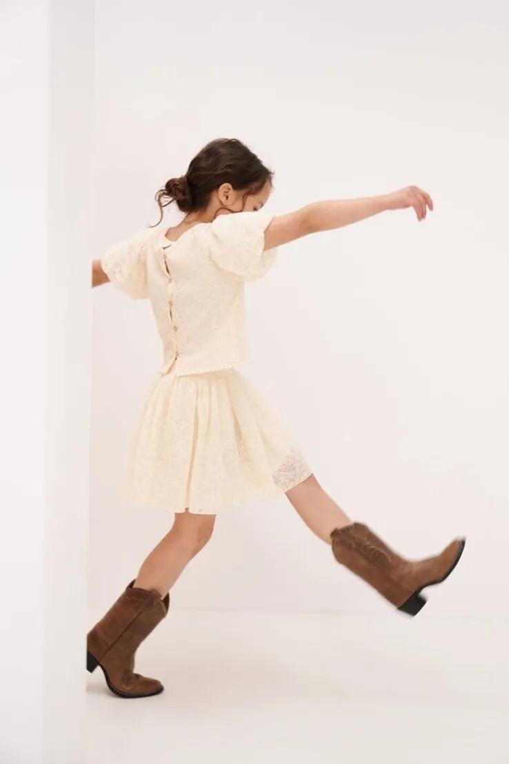Ontdek de TESSY MESH BLOUSE van NONO, een stijlvolle keuze voor meisjes die houden van een vleugje elegantie. Deze ecru blouse met kanten bovenwerk en en pof mouwtjes straalt verfijning uit en is perfect voor een dagje school of een speciale familiebijeenkomst. Combineer met een trendy jeans voor een casual look of draag met een nette rok voor een chique uitstraling. De luchtige mesh-stof zorgt voor comfort en bewegingsvrijheid, terwijl de subtiele details een speelse touch toevoegen. Een must-have in de garderobe van elke jonge dame.