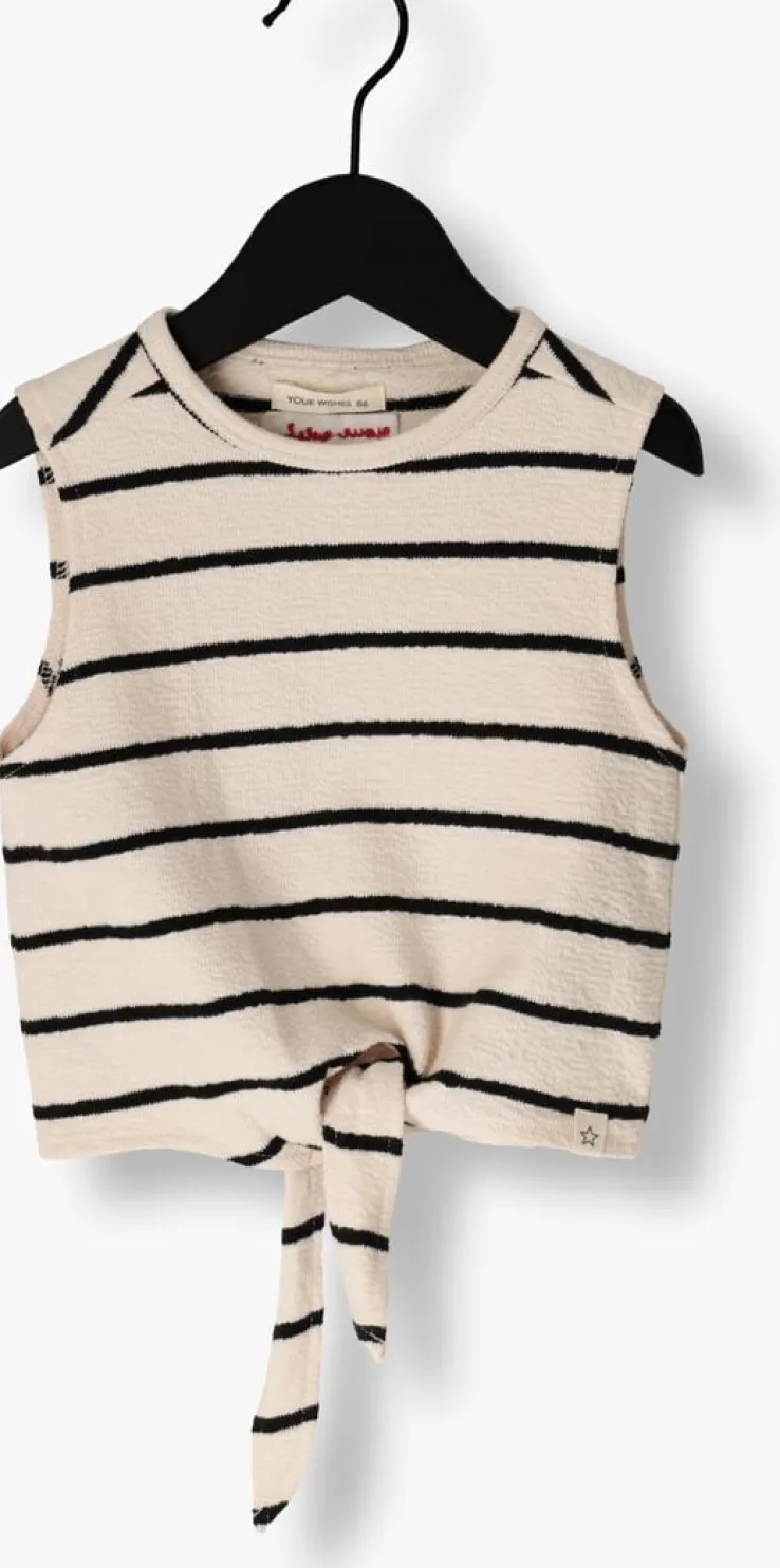 Ontdek de speelse charme van de STRIPES FRONT TIE SINGLET in een zachte ecru tint. Deze top is perfect voor meisjes die houden van een vleugje stijl en comfort. De subtiele strepen en de speelse knoop aan de voorkant maken het een veelzijdige keuze. Ideaal voor een middagje spelen in het park of een gezellige picknick met vriendinnen. Combineer met een lichte jeans of een vrolijk rokje voor een frisse, zomerse look. De singlet is gemaakt van zachte materialen die zorgen voor een comfortabele pasvorm, zodat je de hele dag zorgeloos kunt genieten.