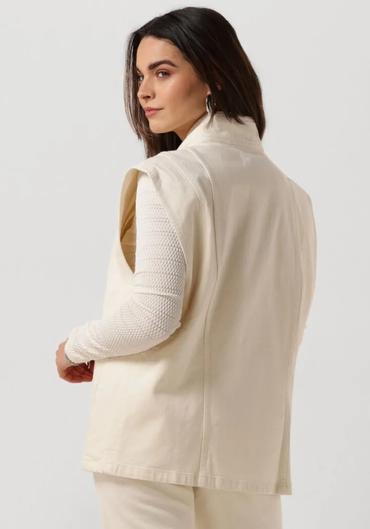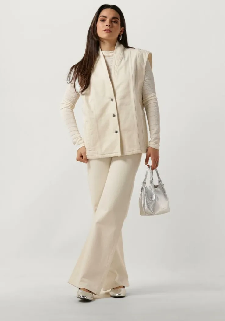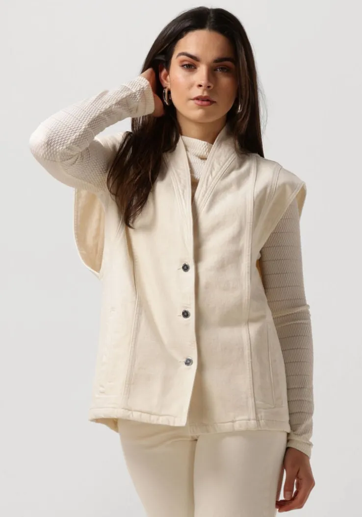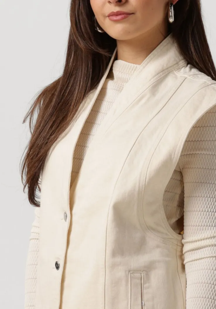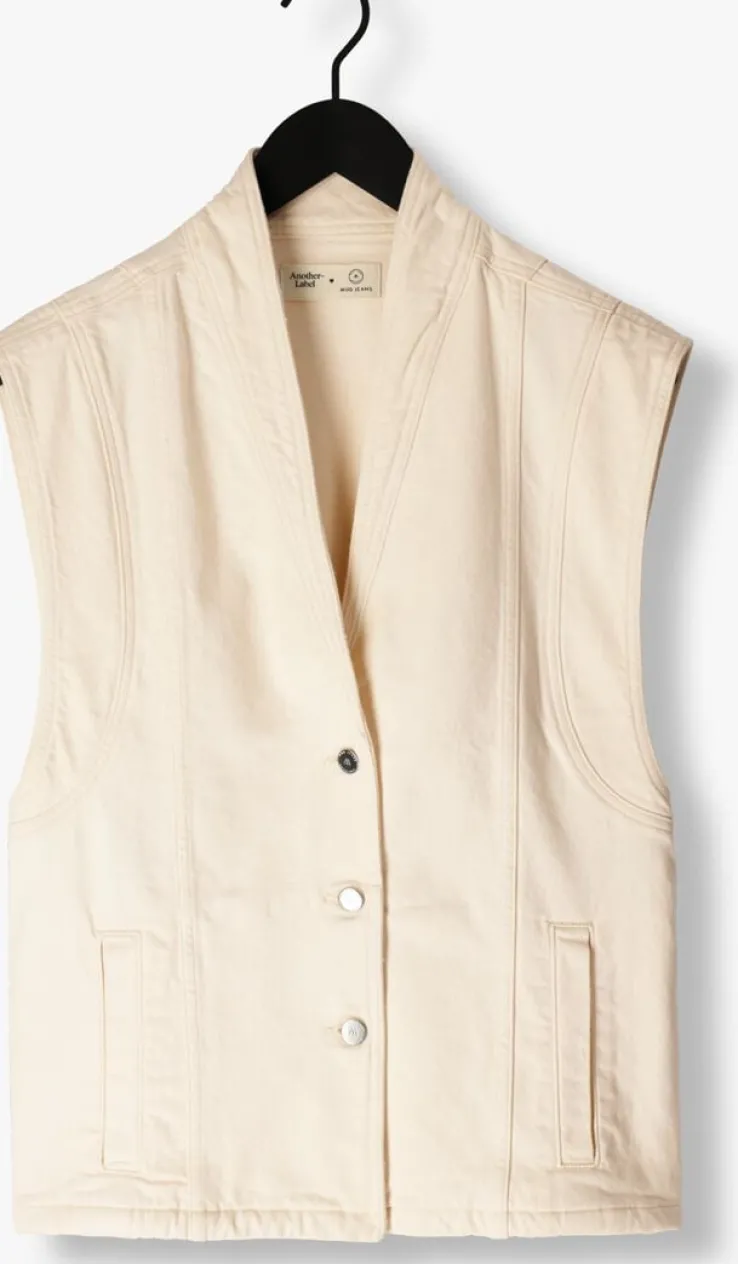 Met het UNNI DENIM VEST van ANOTHER LABEL voeg je een stijlvolle touch toe aan je outfit. Dit gebroken witte gilet is perfect voor dames die op zoek zijn naar een veelzijdig kledingstuk. Draag het gilet over een jurk voor een trendy look, of combineer het met een blouse voor een meer formele uitstraling. Met dit vest kun je moeiteloos een trendy en vrouwelijke look creëren. Of je nu een dagje gaat shoppen of een avondje uit gaat, dit gilet is een must-have item dat goed past bij verschillende kledingstijlen.