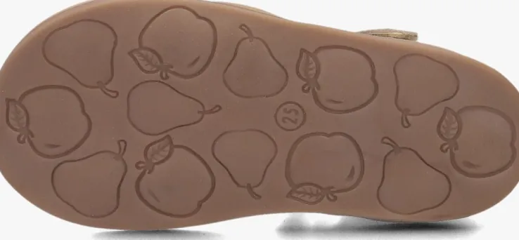 De gouden sandalen van APPLES & PEARS zijn perfect voor kleine fashionista’s die willen stralen deze zomer. Gemaakt van goudkleurig leer in combinatie met ponyhair zijn deze sandalen super tof! De hiel is gesloten en om de enkels is een klittenband sluiting te vinden waardoor je de sandaal naar de gewenste breedte kunt verstellen. Op de wreef is een bandje te vinden die eindigt op de voorvoet waar nog extra bandjes te vinden zijn. De binnenvoering is gemaakt van leer en heeft een gevoerde enkelkraag en voetbed waardoor dit extra zacht aanvoelt. De rubberenzool heeft een loopzool met een leuk appeltjes profiel. Combineer ze met een schattig zomerjurkje of een trendy jumpsuit voor een complete look. De sandalen passen goed bij elke zomerse outfit en geven een extra touch aan elke outfit. Laat je kleintje stralen met deze prachtige sandalen van APPLES & PEARS!