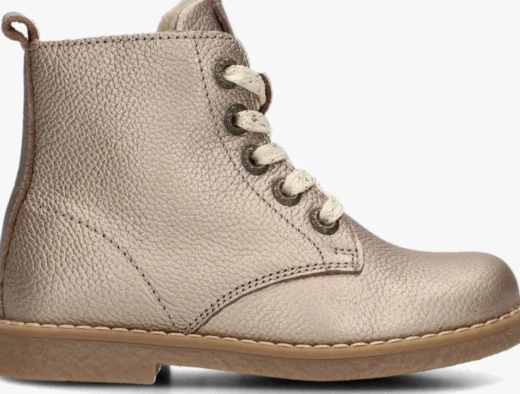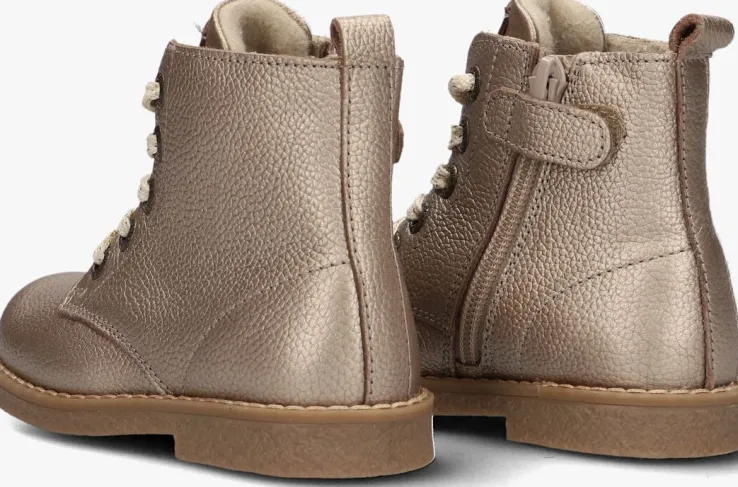Deze goudkleurige veterboots van APPLES & PEARS zijn perfect voor stoere meiden die willen stralen! Gemaakt van leer en met opvallend stikwerk, zijn deze schoenen niet alleen trendy maar ook comfortabel. Het binnenwerk bestaat uit textiel en het voetbed is gemaakt van leer voor een hoog comfort. De zool is gemaakt van rubber, waardoor je stevig kunt stappen. Met de handige ritssluiting trek je de boots gemakkelijk aan en uit. De schachthoogte van 9 centimeter geeft een stoere uitstraling. Combineer deze veterboots met een jeans en een oversized trui voor een trendy en casual look. Of draag ze onder een jurkje voor een stoer contrast. Laat je creativiteit de vrije loop en rock deze boots!