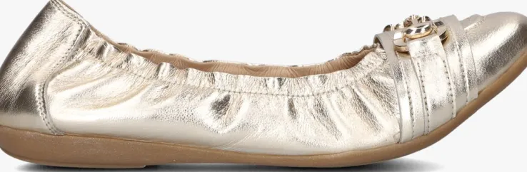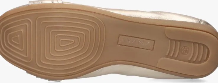 Stap in stijl met deze goudkleurige leren ballerina’s van AYANA, model 4936. Perfect voor dames die op zoek zijn naar comfort en elegantie. Dit model is uitgevoerd in goudkleurig leer en heeft een openstaande neusnaad en een goud detail op de wreef. De binnenvoering is gemaakt van leer en heeft een vast lederen voetbed. De rubberen loop zool heeft een glad profiel met inzetten voor een goede grip. Combineer ze met een mooie jurk voor een feestelijke look of met een jeans voor een casual uitstraling. Maak je look compleet met deze prachtige schoenen en straal de hele dag door!