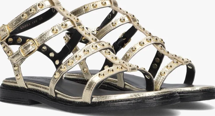 Stap in stijl met deze goudkleurige sandalen 1GAMBA100 van BLASZ. Het bovenwerk is gemaakt van leer en hiermee zijn ze perfect voor een zomerse dag in de stad of een ontspannen strandwandeling voor een luxe gevoel. De sandalen passen goed bij een luchtige zomerjurk of een trendy jumpsuit. Gemaakt van hoogwaardig leer aan de binnenkant, met een comfortabele rubberen zool voor de hele dag door. De smalle bandjes zijn afgewerkt met goudkleurige bollstuds.