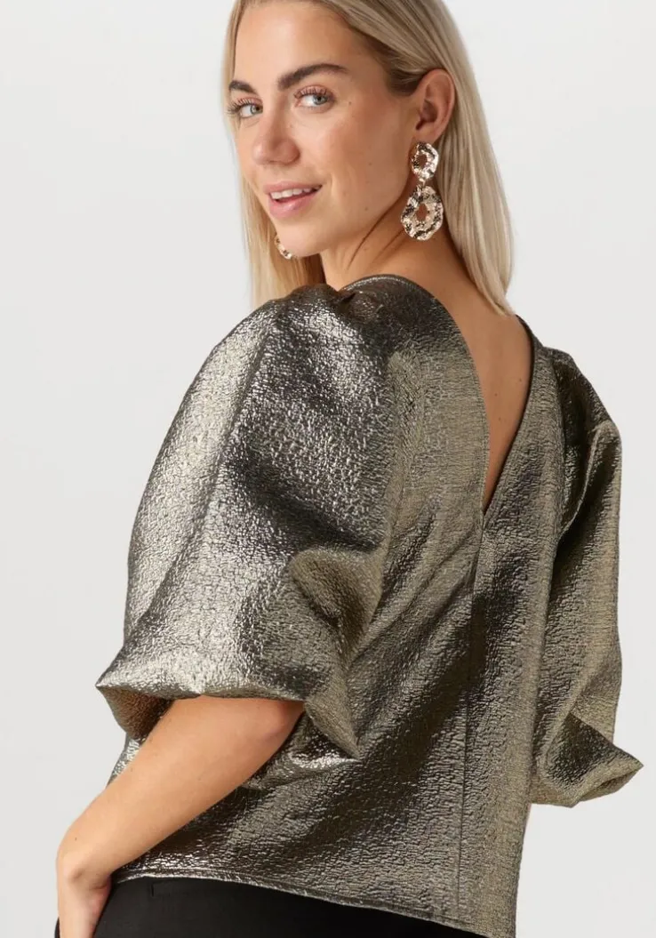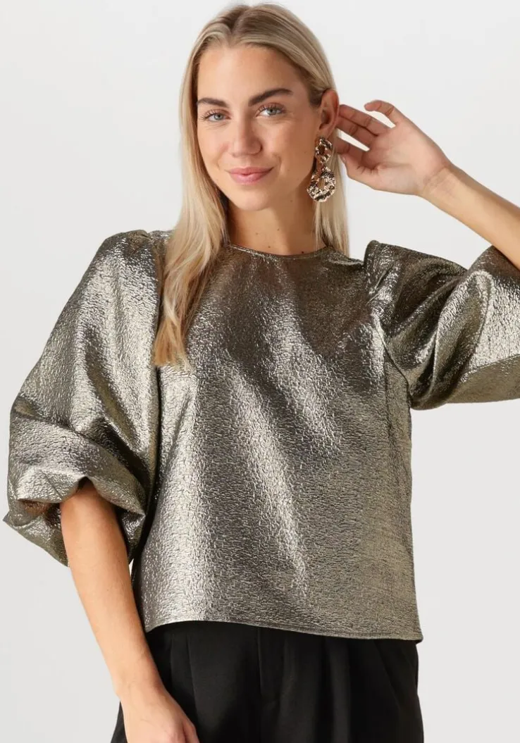 Stralend de dag door met de ZITA GOLD BLOUSE van BY-BAR. Deze gouden blouse is een echte eyecatcher en perfect voor dames die houden van een vleugje glamour. Draag ‘m tijdens een gezellige brunch met vriendinnen of een avondje uit in de stad. De blouse combineert prachtig met een stijlvolle zwarte pantalon of een trendy jeans voor een casual-chique look. De subtiele glans en elegante snit maken deze blouse een veelzijdige toevoeging aan je garderobe. Voel je zelfverzekerd en stijlvol, ongeacht de gelegenheid. Laat je inspireren door de veelzijdigheid van deze gouden must-have.