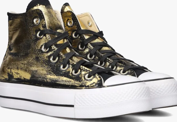 Voeg een vleugje glamour toe aan je dagelijkse look met deze gouden CHUCK TAYLOR ALL STAR LIFT hoge sneakers. De ronde neus en de plateauzool geven je outfit een trendy twist. Dankzij de canvas binnenkant blijven je voeten comfortabel, of je nu een dagje gaat shoppen of een ontspannen wandeling maakt. Combineer ze moeiteloos met een casual jeans of een speelse zomerjurk voor een stijlvolle uitstraling. De vetersluiting zorgt voor een perfecte pasvorm, terwijl de robuuste rubberen zool zorgt voor grip en stabiliteit. Deze sneakers zijn de perfecte mix van comfort en stijl voor elke dame.