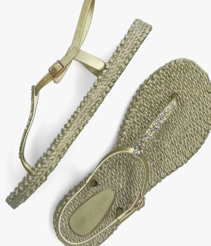 Bij het zien van deze beauty’s loop je in gedachten op de boulevard, kijkend naar zon, zee en strand. Klinkt goed toch? Dit goudkleurige model CHEERFUL van het merk Ilse Jacobsen is dé perfecte slipper voor zomerse avonturen! Hij heeft een unieke look door de rubberen zool met geweven look en de fijne wreefbandjesmet grove strass-stenen en studs.Met het handige enkelbandje met merkreliëf en gespsluiting maak je dit model gemakkelijk opmaat en blijft hij goed vast zitten. Door de superflexibele zool en het gripvaste profiel loopt deze slipper uitzonderlijk comfortabel!