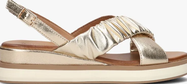 Stap in stijl met deze gouden leren sandalen van INUOVO. Met artikelnummer 113059-1 ben jij helemaal klaar voor de zomer! De sandalenhebben goudkleurige lederen en leatherlook banden met een gespsluiting op het enkelbandje, waardoor je’m gemakkelijk aan en uit kunttrekken. Het voetbed bestaat uit gevoerd leer wat zorgt voor een uitstekende demping. Extra leuk zijn de witte accenten in de zool die zorgen voor een speels effect.De zool islichtgewicht uitgevoerd enis bijna 3 centimeter dik onder de voorvoet en heeft eenhakhoogte van5 centimeter.Of je ‘m nu draagt onder een broek of jurk, jij kunt er de hele dag op door!