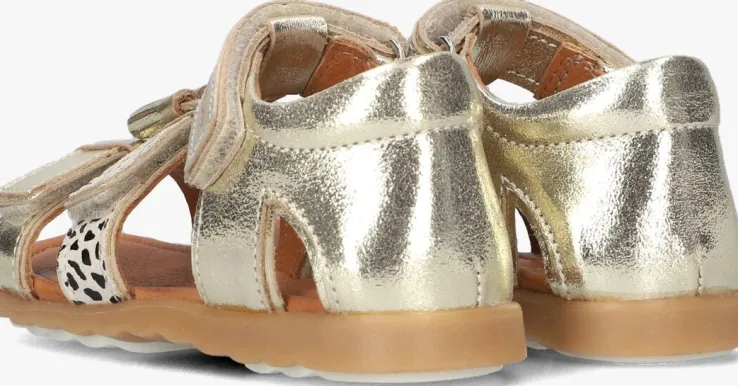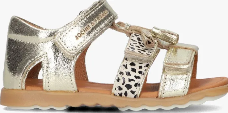 Hoera! Het is weer zover, de zon laat zich zien en die voeten hoeven niet meer verstopt te zijn in dichte schoenen. Laat ze maar zien met deze prachtige sandalen SING uit de collectie van het merk JOCHIE & FREAKS. De buitenkant is gemaakt van goudkleurig leer, heeft goudkleurige kwastjes op de wreef en een beige suède bandje met zwarte stippels. Alle drie de bandjes zijn voorzien van klittenband, zodat je ‘m perfect aan de voet aanpast. Voor extra comfort is het hielbandje voorzien van een lichte opvulling en het binnenwerk en voetbed zijn uitgevoerd in leer. Aan het enkelbandje prijkt een subtiel merkreliëf en de zool is gemaakt van rubbermet een gripvast ribbelprofiel. Met deze mooie sandalen ben je helemaal klaar voor al die dagen vol zonneschijn!