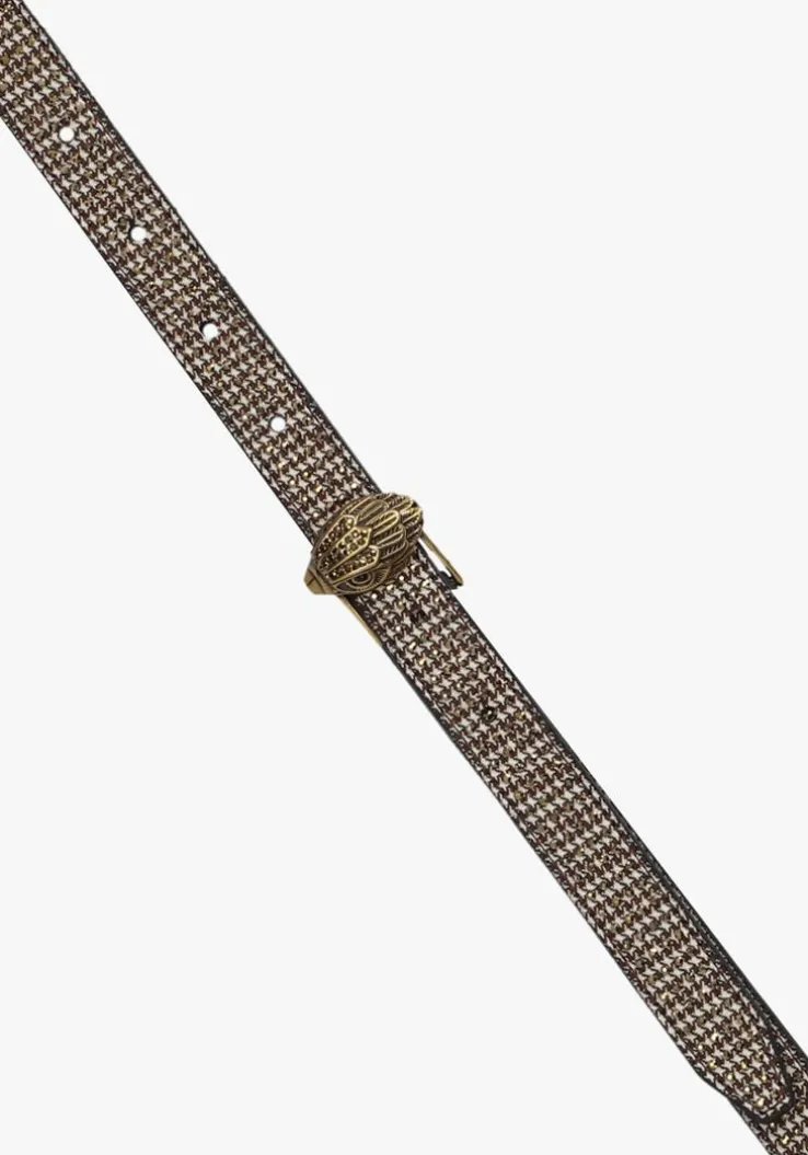 Voeg een vleugje glamour toe aan je outfit met de 20 EAGLE BELT van KURT GEIGER LONDON. Deze gouden riem is een echte eyecatcher en perfect voor dames die houden van een statement accessoire. Combineer hem met een stijlvolle jurk voor een avondje uit of draag hem casual met een high-waisted jeans voor een trendy look. De gedetailleerde gesp in de vorm van een adelaar geeft je outfit net dat beetje extra flair. Of je nu naar een feestje gaat of een dagje in de stad doorbrengt, deze riem tilt je look naar een hoger niveau. Maat S/M heeft een afmeting van 102 x 2 (Lengte x Breedte).