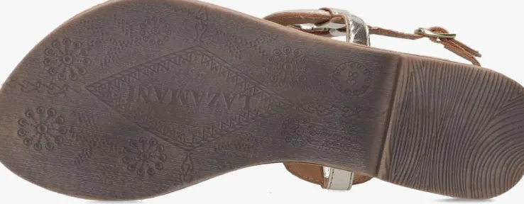 Met sandalen aan je voeten van het merk LAZAMANI ben je verzekerd van eentrendy look in combinatie met een hoog comfortabel gevoel. Alleitems uit de collectie van dit merk zijnvoorzien van een verrassende twist. Dat zie je ook zeker weer terug in deze goudkleurige sandaal 33.543. Het bovenwerk is gemaakt van glanzend leer en heeft een mooie decoratie van vier gewatteerde rondjes. Het bandje om de enkel is voorzien van een gespsluiting waardoor je ‘m gemakkelijk aan- en uittrekt en de sandaal goed aan je voet blijft zitten. Het binnenwerk is leer gevoerd en de het voetbed met reliëf merkopdruk heeft een fijne suède afwerking met schuimvulling voor een heerlijk zacht en comfortabel gevoel. De rubberen zool is flexibel waardoor hij fijn meebuigt met de voet en is voorzien van een fijn maar gripvast profiel. Een heerlijke sandaal voor allezonnige dagen met een mooie decoratie voor die extra vrolijke touch onder al je outfits!