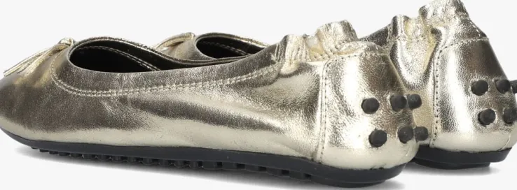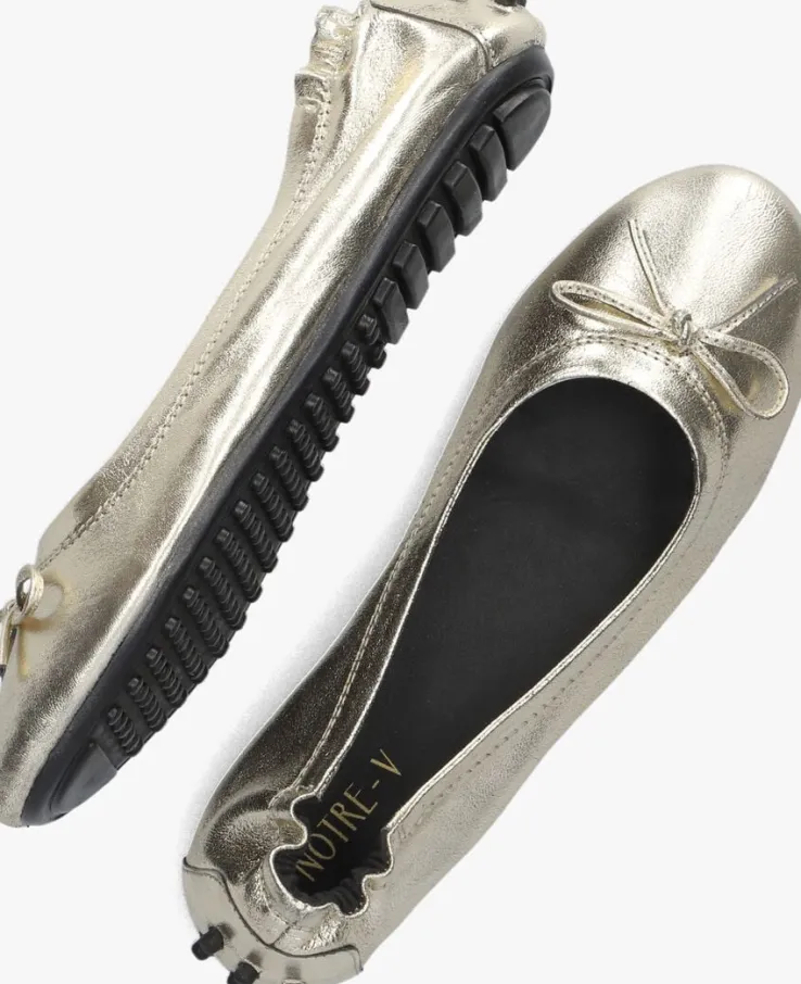 Een opvallende en elegante ballerina is deze zomer onmisbaar in je schoenenkast! Dit goudkleurige model KL-4528 is van het merk NOTRE-V en maakt al jouw outfits helemaal af! Deze ballerinais uitgevoerd in soepelleer met een mooie glans en stiksels. De neus is voorzien van eenveterstrikje. Het binnenwerk is suède uitgevoerd met een vast, leer voetbedwelke voorzien is van een schuimlaag en zorgt ervoor dat de ballerina’sde gehele dag door comfortabel gedragen kunnen worden. De rubberen loopzool is voorzien van nopjes, deze komen ook terug op de hiel. Draag ze onder een jeans of pantalon naar het werk of neem ze mee in je handtas om lekker te kunnen dansen na een hele dag ophakken te hebben gelopen.