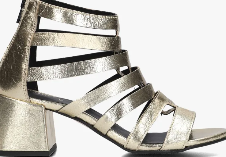 Stap in stijl met deze prachtige goudkleurige sandalen van AYANA. Het bovenwerk bestaat uit leer en heeft smalle bandjes over de gehele schoen. Met een comfortabele blokhak van 5 centimeter en ritssluiting aan de achterzijde zijn deze sandalen perfect voor een dagje uit of een zomerse avond. Combineer ze met een luchtige zomerjurk of een trendy jumpsuit voor een complete look.