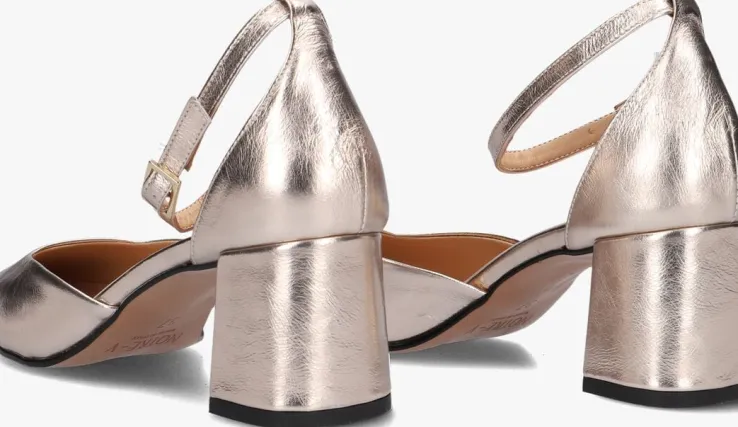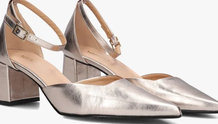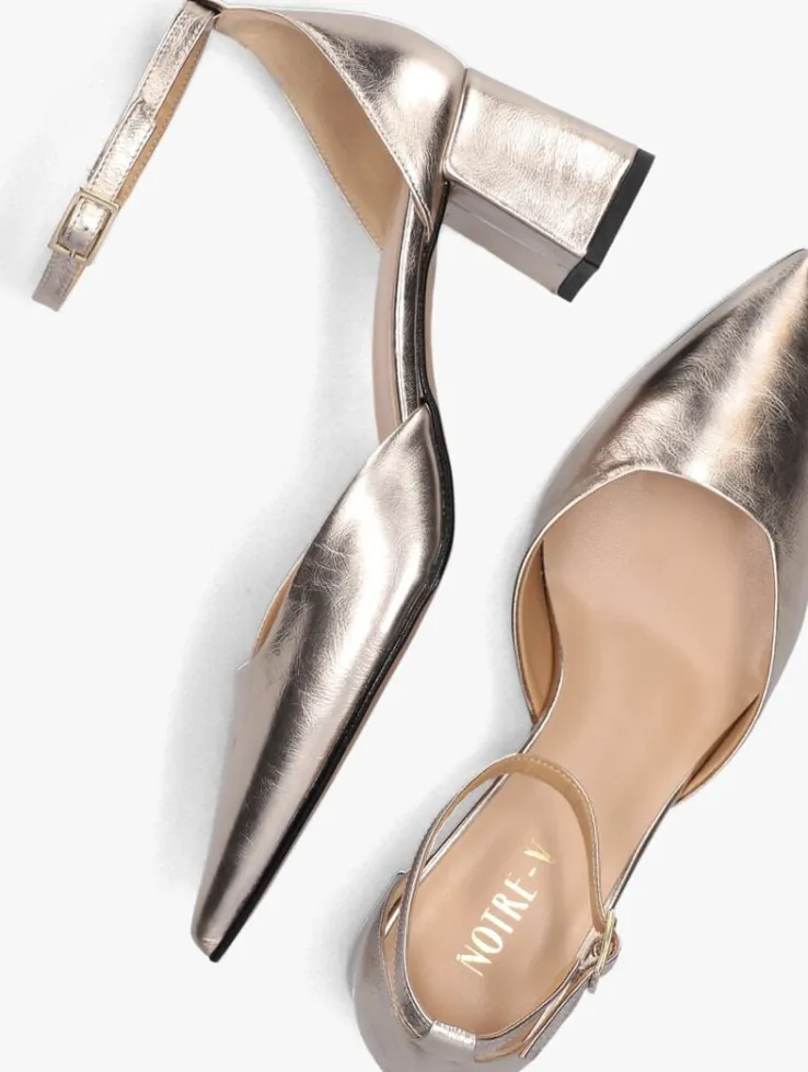 Stap in stijl met deze prachtige goudkleurige pumps van NOTRE-V. Het bovenwerk bestaat uit leer en met een puntige neus en blokhak geven ze elke outfit een chique touch. De leren/leatherlook voering zorgt voor comfort, terwijl de rubberen zool grip biedt. Draag deze pumps naar een feestje of een zakelijke bijeenkomst en combineer ze met een elegante jurk of een nette broek. Met de gespsluiting blijven ze stevig aan je voeten zitten, zodat je de hele dag kunt stralen.