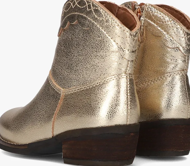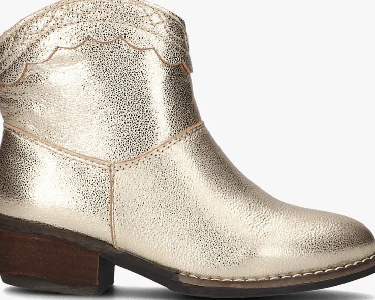 Heel tof zijn deze enkellaarsjes LIZZY van het merk OMODA. Dit laarsje in goudkleurig leer heeft stoere cowboy-accenten en een opvallende band met broderie randjes op de schacht. Het laarsjeheeft decoratievestiksels en een wit stiksel op de zoolrand. Door de ritssluiting aan de binnenzijde trek je ‘m eenvoudig aan en uit.Het binnenwerkis van zacht textiel en het lederlook voetbed is niet uitneembaar.De rubberen zool is voorzien van een klein hakje van bijna 4centimeterhoog en is afgewerkt meteen gripvast profiel. Combineer ’m stoer onder een jeans of leuk jurkje!
