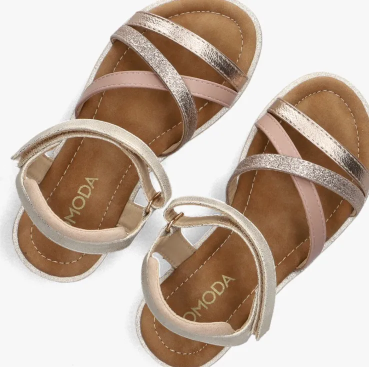 Laat je stralen met de BARBARA sandalen in een sprankelende gouden kleur. Perfect voor zonnige lente- en zomerdagen. De peeptoe en het leatherlook materiaal geven een stijlvolle touch, terwijl de klittenbandsluiting zorgt voor gemak. De rubberen zool biedt comfort tijdens een middagje picknicken in het park of een speelse dag in de speeltuin. De binnenkant van leatherlook voelt zacht aan voor kleine voetjes. Combineer deze sandalen met een luchtig zomerjurkje of een vrolijke short voor een complete look. Met de BARBARA van OMODA ben je klaar voor elk avontuur in stijl!