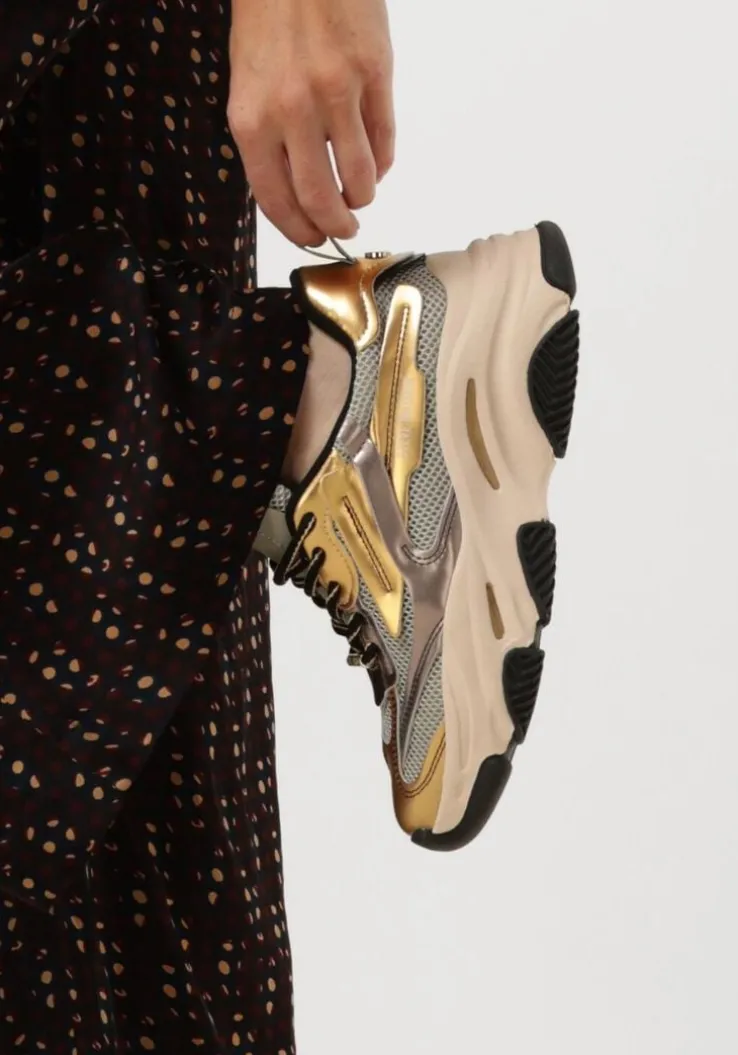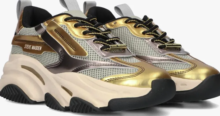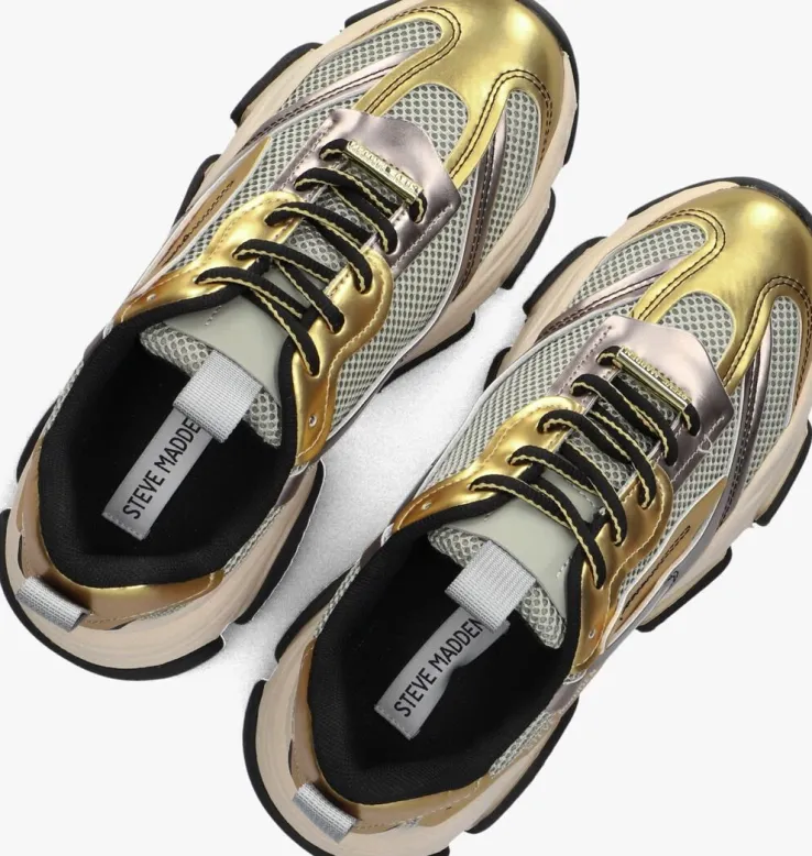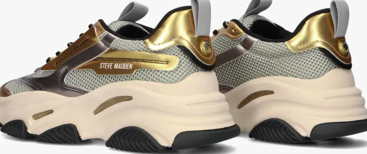 Creatief en speels: dat zijn de sneakers van de Amerikaanse ontwerper Steve Madden. Zo ook dit gave model POSSESSION! Dit model is uitgevoerd in grijs mesh met leatherlook overlays in de kleuren zilver en goud. Leuke details zijn de dubbele stiksels, de merkopdruk op de zijkant, de merkstud op de hiel, de tweekleurige veters en het merkembleem op de veters. Het binnenwerk is gemaakt van mesh en heeft een uitneembaar voetbed met fijne demping. De tong en enkelkraag zijn opgevuld voor extra comfort en op de tong en hiel vind je handige aantreklusjes. Door de witte hielstabilisator ervaar je extra steun bij de hiel en het grove profiel van de loopzool creëert veel grip bij iedere stap. De zool zorgt niet alleen voor comfort, maar ziet er ook superleuk uit door de goudkleurige inzetstukken, details en golvende vormen. Een sneaker om verliefd op te worden! Heb jij al een crush?