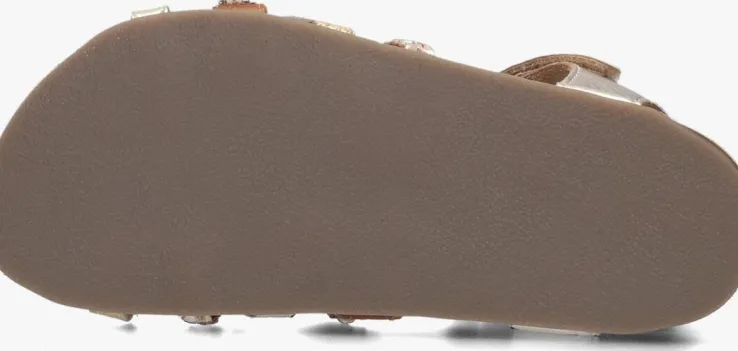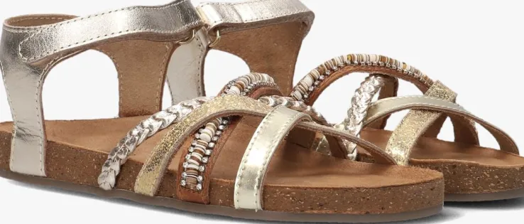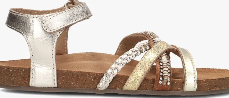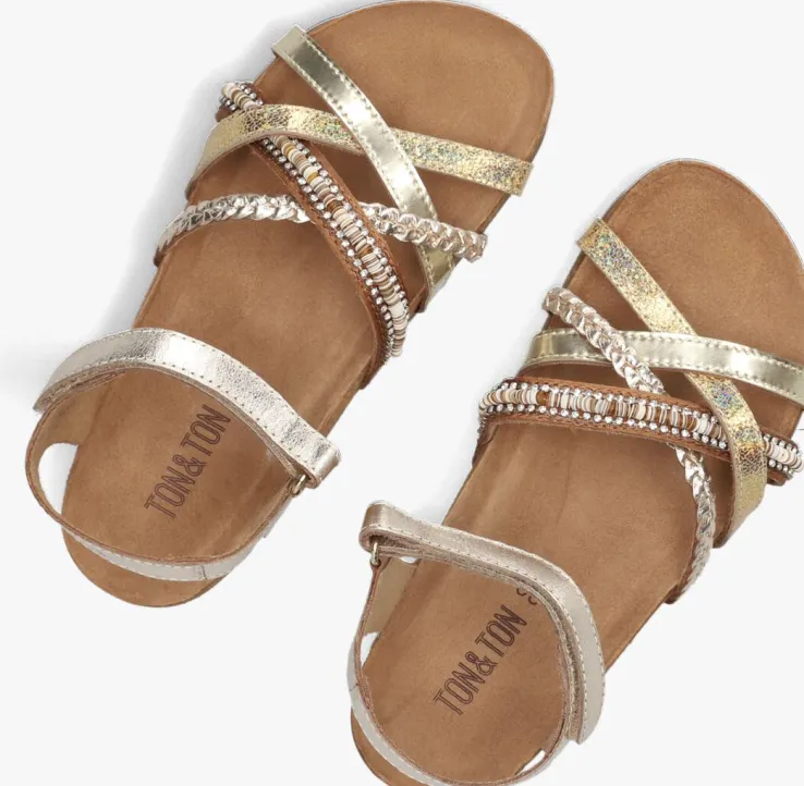 Deze goudkleurige MADITA sandalenkomen uit de collectie van het gave merkTON & TON. De sandalen van dit merk worden met veel liefde en passie gemaakt en dat zie je terug in de kwaliteit! Het bovenwerk van leatherlook heeftvier bandjes over de wreef en één bij de enkel. Dankzij de klittenbandsluitingtrek je ze super snel aan en uit en pas je ‘m gemakkelijk aan naar je voet. De bandjes hebben eengevlochten patroon, een glitter patroon, een egaal bandje en een bruin bandje met strass-steentjes en pailetten. Aan de binnenzijde zijn de bandjes afgewerkt met suèdelook, zodat ze extra fijn aanvoelen aan de voeten.Het suède voetbed zorgtvoor veel demping en het kurk in de zool gaat zich na verloop van tijd naar de voet vormen, wat bijdraagt aan een goede afwikkeling van de voet.De rubberenloopzoolis gemaakt vananti-sliprubber vooreen goede grip. Met deze hippe sandaaltjes is uw kind klaar voor de zomer!