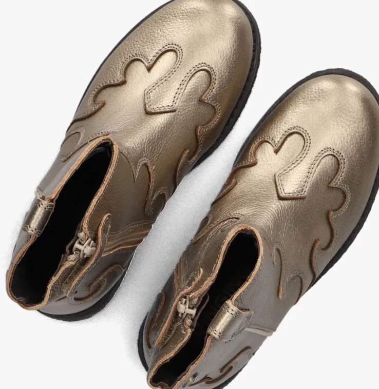 Laat je kleine fashionista stralen met de VIKKI enkellaarzen van VINGINO. Deze goudkleurige beauties zijn gemaakt van hoogwaardig leer, zowel aan de buiten- als binnenkant. De laars is afgewerkt met gevlamde patronen, aantreklus en handige ritssluiting voor een snelle in en -uitstap. De ronde neus en de rubberen zool zorgen voor comfort en duurzaamheid. Met een schachthoogte van 14 cm en een handige ritssluiting trek je ze makkelijk aan en uit. Perfect voor een dagje shoppen of een feestje. Combineer ze met een schattig jurkje of een stoere jeans voor een trendy look. Deze laarsjes zijn een must-have voor elke stijlvolle dame!
