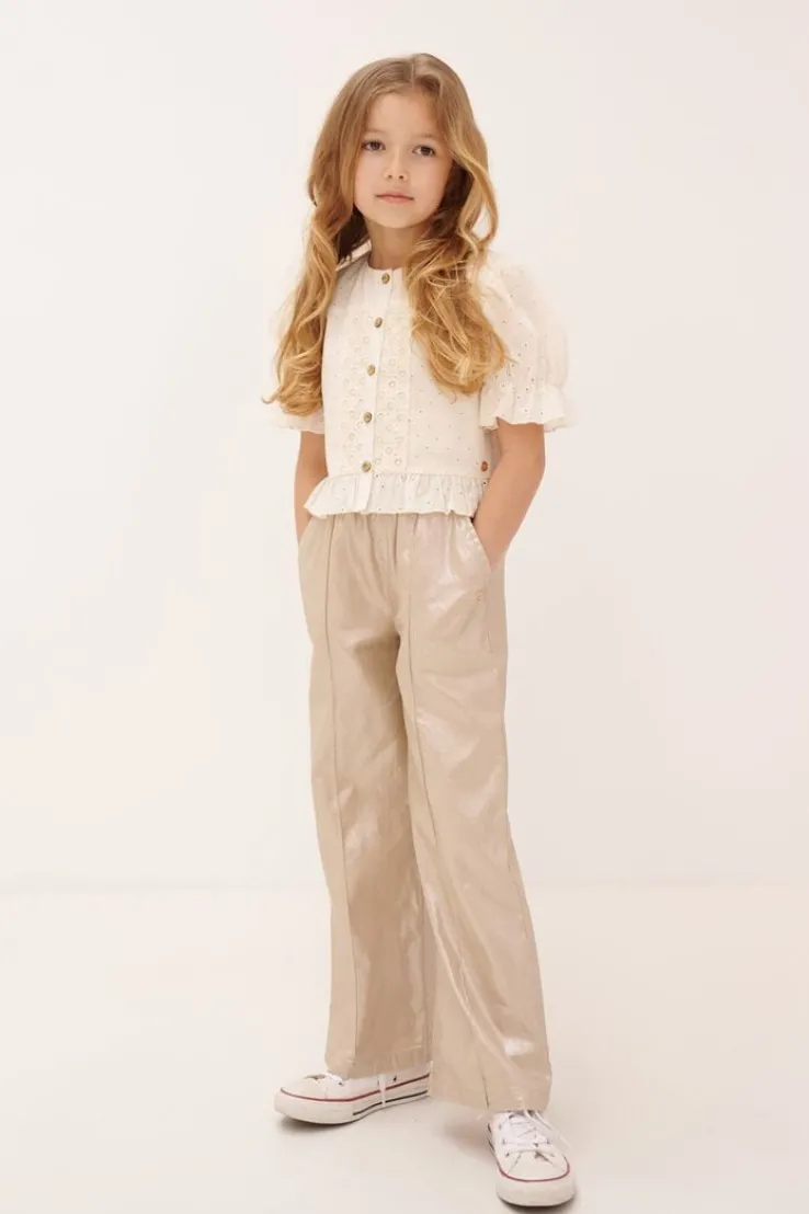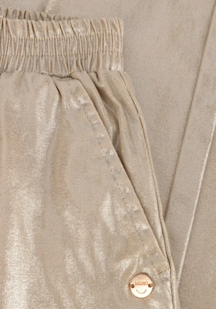 Voeg een vleugje glamour toe aan je garderobe met de SAYLA STRETC TWILL PANTS van NONO. Deze goudkleurige pantalons zijn perfect voor meisjes die houden van een beetje sprankeling. Ideaal voor een dagje shoppen met vriendinnen of een feestje waar je wilt stralen. Combineer met een stijlvolle blouse of een casual T-shirt voor een veelzijdige look. De comfortabele stretch twill stof zorgt ervoor dat je de hele dag vrij kunt bewegen. Deze broeken passen perfect bij zowel sneakers als elegante laarsjes. Een must-have voor elke jonge dame die houdt van mode en comfort.