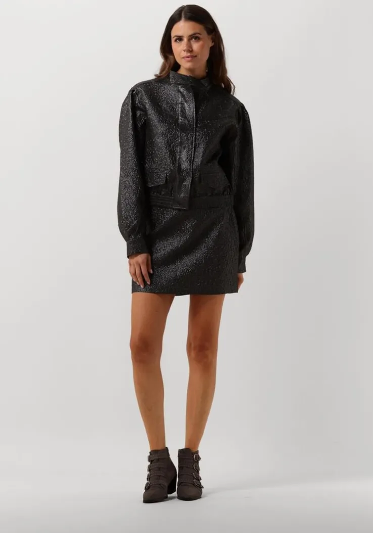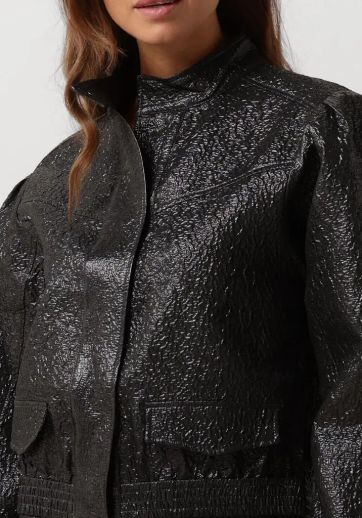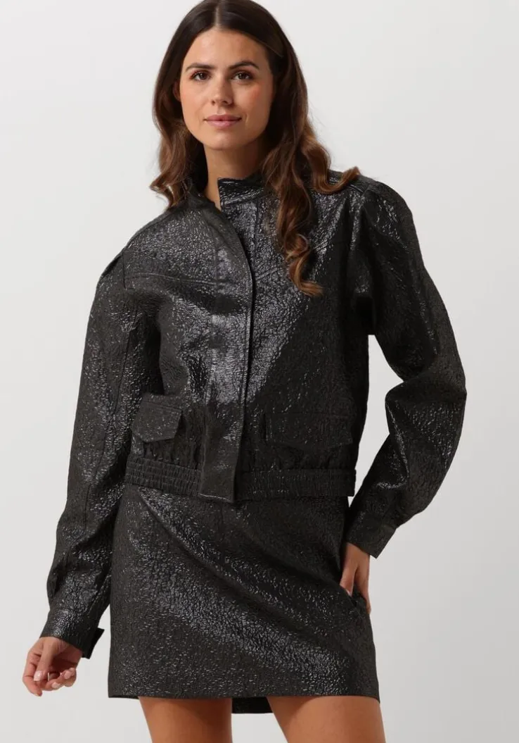 Maak kennis met de VIVE PES 350 van AAIKO, een stijlvol grijs jack met een glanzende afwerking dat elke garderobe verrijkt.