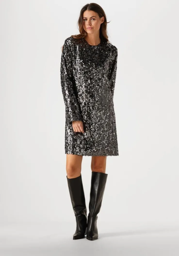 Trek de SALINAGZ DRESS van GESTUZ aan en straal op elk feestje. Deze grijze mini jurk, gemaakt van glanzend pailletten, is dé perfecte keuze voor dames die willen opvallen. De trendy party-look maakt het ideaal voor een avondje uit of een chique cocktailparty. Combineer met een paar opvallende hakken en een elegante clutch voor een complete look. De jurk past ook prachtig bij een stijlvolle blazer voor een iets formelere gelegenheid. Voel je zelfverzekerd en modieus in deze must-have jurk die je garderobe een sprankelende update geeft.