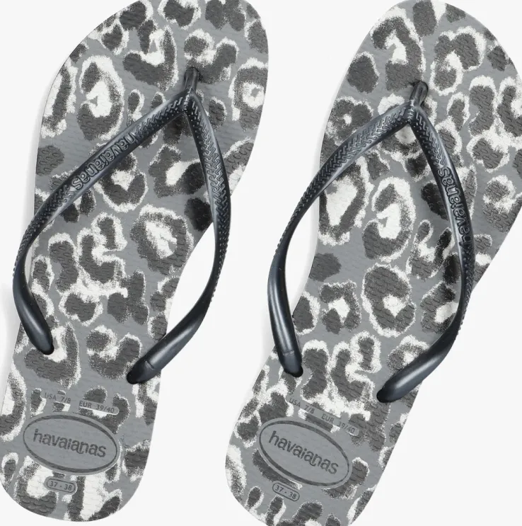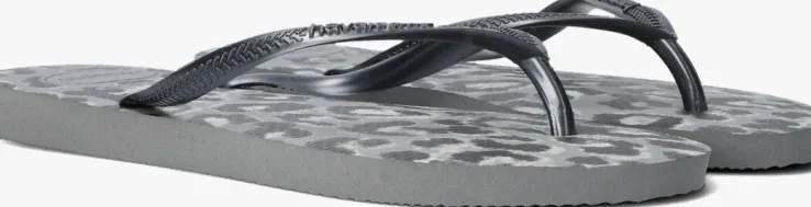 Een absolute zomer must-have van het Braziliaanse merk Havaianas; dat is deze zomerse SLIM ANIMALS slipper. Dit grijze exemplaar heeft smalle bandjes voor een extra feminin look en een toffe animalprint op het voetbed. Ook is op het bandje de merknaam in reliëf te vinden. De slipper is comfortabel, duurzaam, lichtgewicht, anti-slip, hittebestendig én waterresistant. Wat wil je nog meer? Dat de zon schijnt en je ze de hele dagkan dragen natuurlijk!