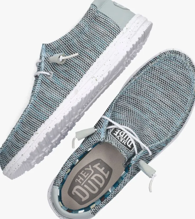 Als je opzoek bent naar moderne schoenen die licht is in gewicht en veel comfort biedt ben je bij schoenen van het merk HEYDUDE aan het juiste adres. Dit Italiaanse merk maakt al hun schoenen met veel passie, waarbij jou comfort centraal staat. Zo zijn alle schoenen licht in gewicht, hebben ze een duurzaam karakter én een aangename pasvorm. Deze grijs met blauw gemêleerde instapper WALLY SOX is gemaakt van organisch, gevlochten katoen met stoere opstaande naden, een merkborduursel op de tong, is voorzien van een handige vetersluiting en het hielstuk bestaat uit grijs leatherlook. Het binnenwerk is gevoerd met ademend katoen en beschikt over een uitneembaar voetbed van 15% gerecycled kurk. Het Flex & Fold systeem zorgt voor een natuurlijke pasvorm en een hoog loopcomfort. De rubberen loopzool is afgewerkt met een gripvast profiel zodat jij met iedere stap een goede grip ervaart. Draag ze onder een nette pantalon of een casual jeans, deze schoenen zijn eindeloos te combineren met al jou zomerse outfits.
