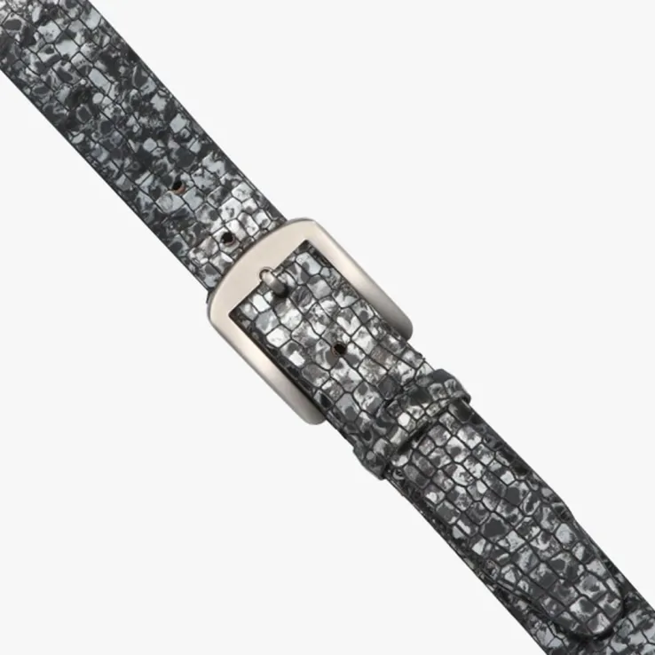 MAZZELTOVishét merk voor de modebewuste man die er graag goed uitziet, de trends volgt en zijn stijlen op verschillende manieren combineert. In de collectie vind je diverse invloeden van klassiek tot retro en van stoer tot sportief. Er is vast wel een model wat jou aanspreekt. Deze opvallende grijze riemENZO BELT is uitgevoerd in hoogwaardig leer met een zwarte lerenbinnenvoeringen een vierkante metalen gesp. De buitenkant is voorzien van een grove slangenprint in combinatie met een metallic finish. Deriemis 3,5 centimeter breed en gemakkelijk op maat te maken door de gesp te demonteren en op de juiste lengte terug te plaatsen. De perfecteriemvoor een stijlvolle look op ieder moment! Tip: match ‘m bij de bijpassende netteschoenen (Omoda-nummer 119056, indien voorradig) en je outfit is om door een ringetje te halen!De riem heeft een standaard lengte van 120 centimeter!