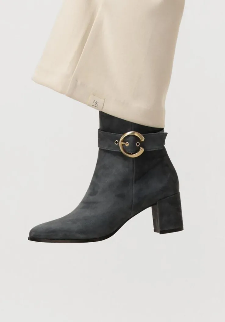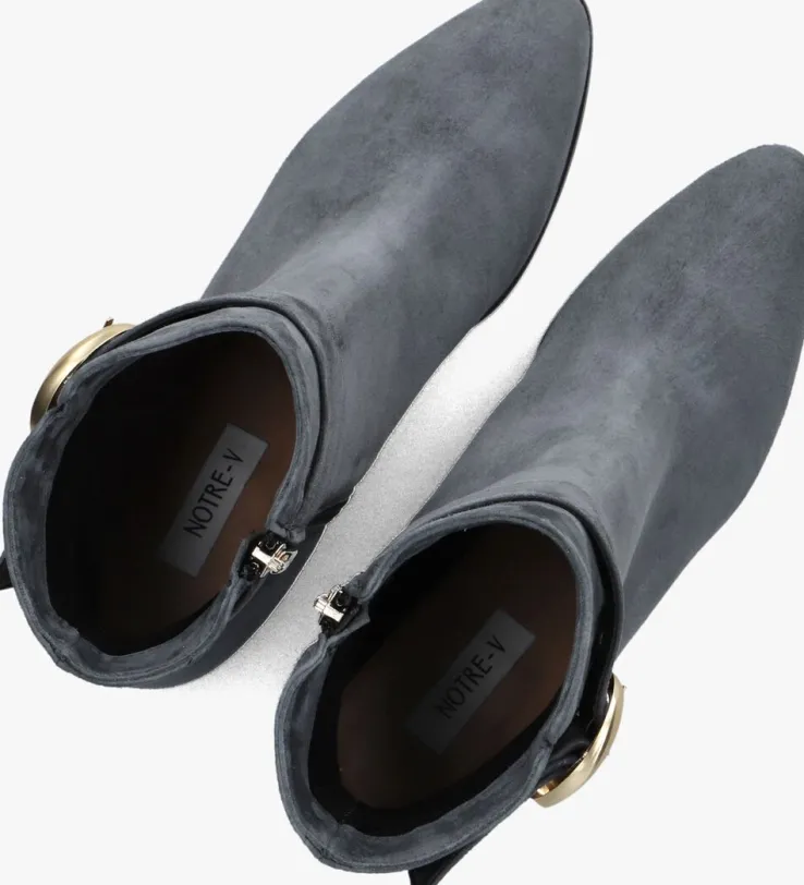 Stap stijlvol de dag in met de grijze enkellaarzen 8552 van NOTRE-V. Deze elegante schoenen zijn perfect voor een dag op kantoor of een avondje uit. Het bovenwerk bestaat uit grijs suéde met een goudkleurige siergesp rondom de schacht. Combineer ze moeiteloos met een jeans of een chique rok voor een verfijnde look. De zachte buitenkant geeft een luxe uitstraling, terwijl de stevige blokhak zorgt voor comfort en stabiliteit. Of je nu een zakelijke meeting hebt of een diner met vrienden, deze enkellaarzen zijn jouw go-to keuze. Voeg een vleugje klasse toe aan je garderobe met deze veelzijdige en tijdloze schoenen.
