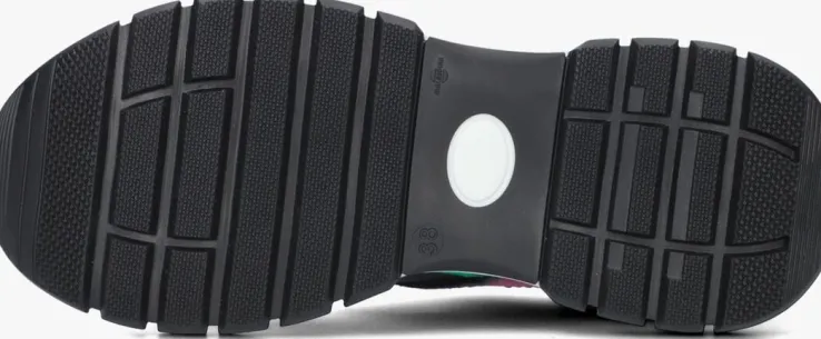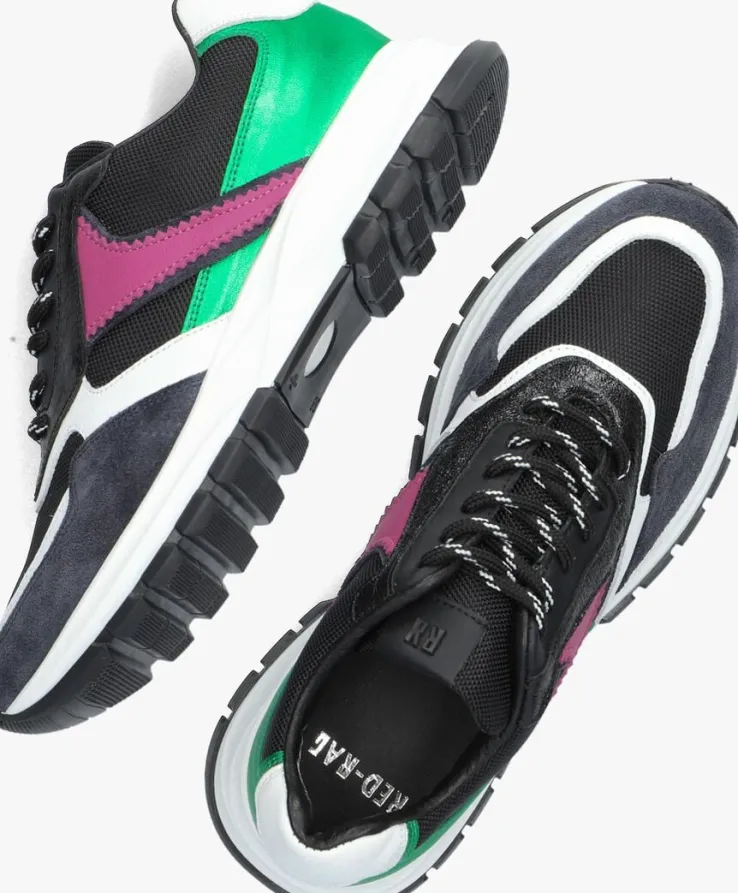 Deze lage sneaker 76962 komt uit de schoenencollectie van het merk RED-RAG en is een opvallende verschijning! De schoen is gemaakt van zwart mesh en heeft roze en witte panelen van leer en een grijze neusrand van suède. Opvallend is de groene metallic achterkant, de glanzende veterrand en de witte hielkap. Op de tong zit een merkembleem en de veters zijn zwart met wit. De binnenkant is gemaakt van leer en heeft een uitneembaar voetbed. De rubberen zool heeft mooie lijnen en een zwarte loopzool met gripvast profiel en geeft veel comfort. Waar combineer jij ‘m mee?