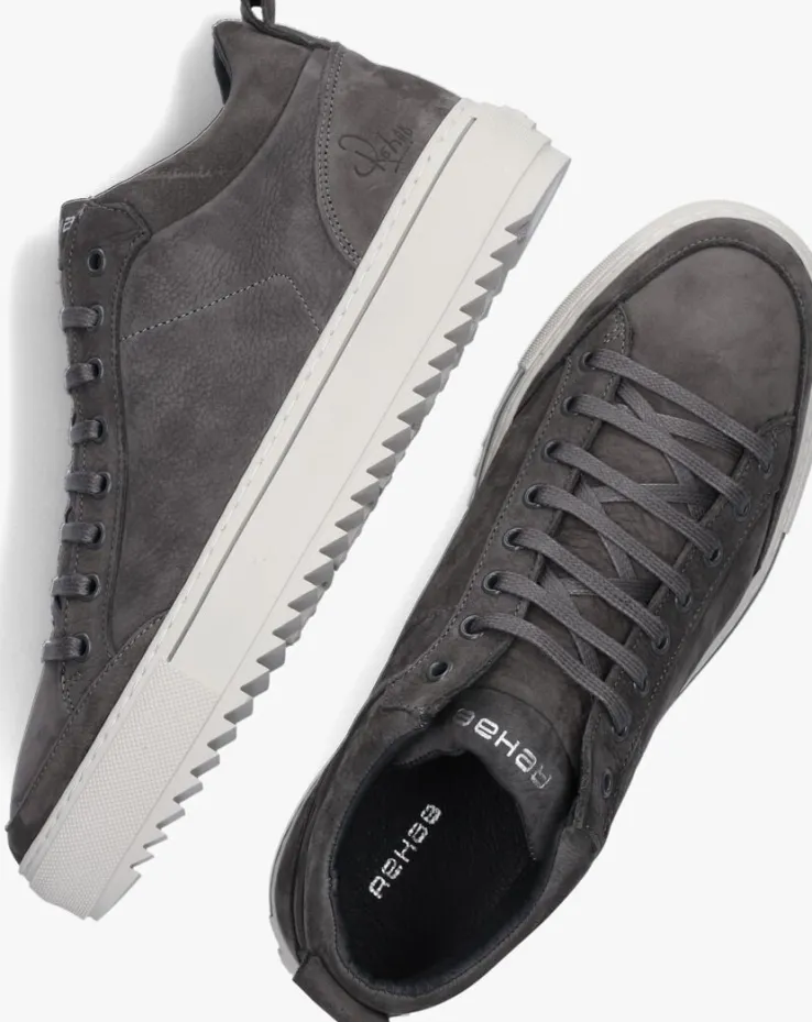 Deze grijze lage sneakerCRAIG met vintage look komt uit de collectie van REHAB en isgemaakt van zacht nubuckleer met sportieve details. De schoen heeft opvallende details zoals de gewaxte platte veters, een handig aantreklusje op de hiel en merkopdrukken op de tong en hielcap.Het binnenwerk is gemaakt van leer en is voorzien van een comfortabel uitneembaar voetbed voor optimaal comfort. De plateauzool is gemaakt van rubber met een opvallende grijze accentstreep en een grof ribbel profiel die er niet alleen heel stoer uit ziet maar ook zorgt voor extreem veel grip. De perfecte schoen om jouw look me af te stylen!