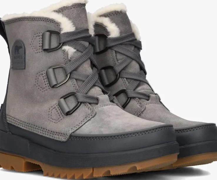 Ontdek de TORINO II WP veterboots van SOREL, perfect voor dames die op zoek zijn naar stijlvolle en comfortabele schoenen. Deze grijze veterboots zijn gemaakt van waterbestendig suède en hebben toffe accenten, waardoor ze een winterse en coole uitstraling hebben. De chunky zool zorgt voor een stoere look en biedt tegelijkertijd veel grip. De veterringen zijn erg grof, de zijkant is afgewerkt met een merkpatch en de hiel heeft een leren bies met aantreklus. Met een schachthoogte van 14 centimeter zijn deze boots ideaal voor elke gelegenheid. Het uitneembare voetbed zorgt voor extra comfort en de vacht- en polyester voering houden je voeten warm tijdens koude dagen. Combineer deze veterboots met een jeans en een oversized trui voor een casual en trendy look!