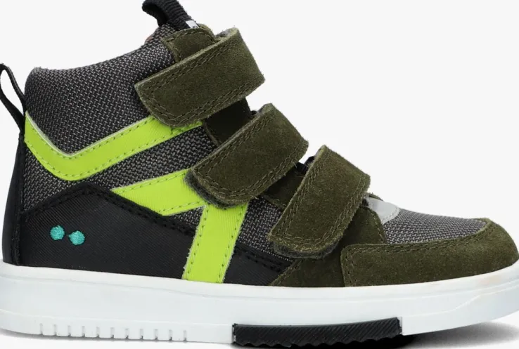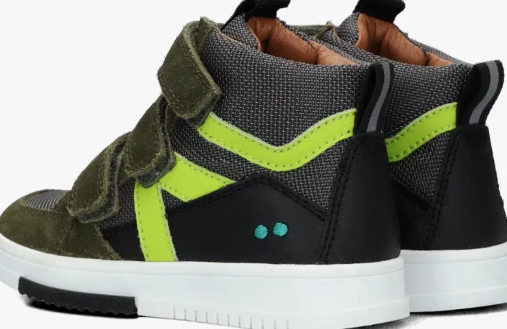 Deze stoere hoge sneakers MILAN MIETERS komen uit de collectie van het Nederlandse merk Bunnies JR. De buitenkant is uitgevoerd in technisch geweven textiel in combinatie met panelen van suède en leer én natuurlijk de neon gele details. Op de hiel vind je de herkenbareBunniesstippen, met op de zijkant strepen in een neon gele kleur en de tongis gesierd met een textiel merklabel met witte opdruk.Het binnenwerk heeft een leren voering met een uitneembaar voetbed. Trek ze gemakkelijk aan-en uit met de handige klittenbandsluiting in combinatie met de aantrek lusjes op de hiel en tong. Extra fijn is het reflecterende tape op de hiel, waardoor jou kleine man ook in het donker goed zichtbaar is. Deze sportieve sneakers beschikken over een flexibele rubberen loopzool met een visgraadprofiel voor een goede grip en stevigheid.