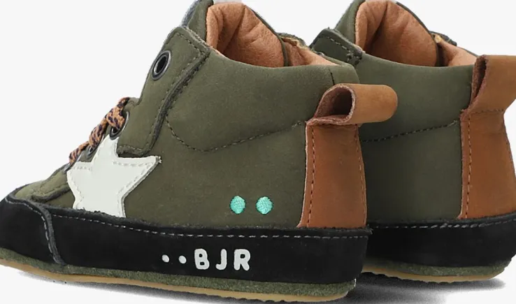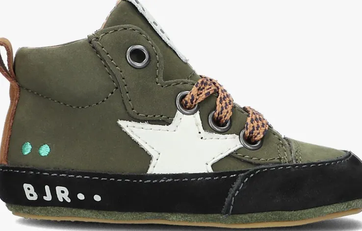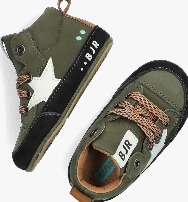 Daar gaat je kleintje, hij of zijzet zijn of haar eerste stapjes of begint te staan! Tijd om nu de allereerste schoentjes uit te zoeken. Naast dat ze er natuurlijk heel leuk uit moeten zien, moeten ze ook flexibel zijn en een goede steun en grip geven. Dit hoge sneaker modelZULKE ZACHT van hetNederlandse merk BunniesJR heeft het allemaal. Ze zien er gaaf uit dankzij de groenelederen buitenkant met opvallende witte ster applicatie aan de zijkant van de schoen en de zwartedetails. Aan de hiel vind je dekenmerkende Bunnies stippen, een textiel hielband en de tong is gesierd met een wit merklabel met zwarte opdruk. Het binnenwerk heeft een lerenvoering met een uitneembaar voetbed. Het rubberen super flexibele zooltje buigt mee met het voetje voor een goede afwikkeling én ontwikkeling van het voetje en heeft een anti-slip profiel. Met deze toffe schoentjes is je kindje helemaal klaar voor deze nieuwe spannende fase!