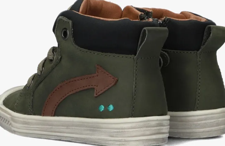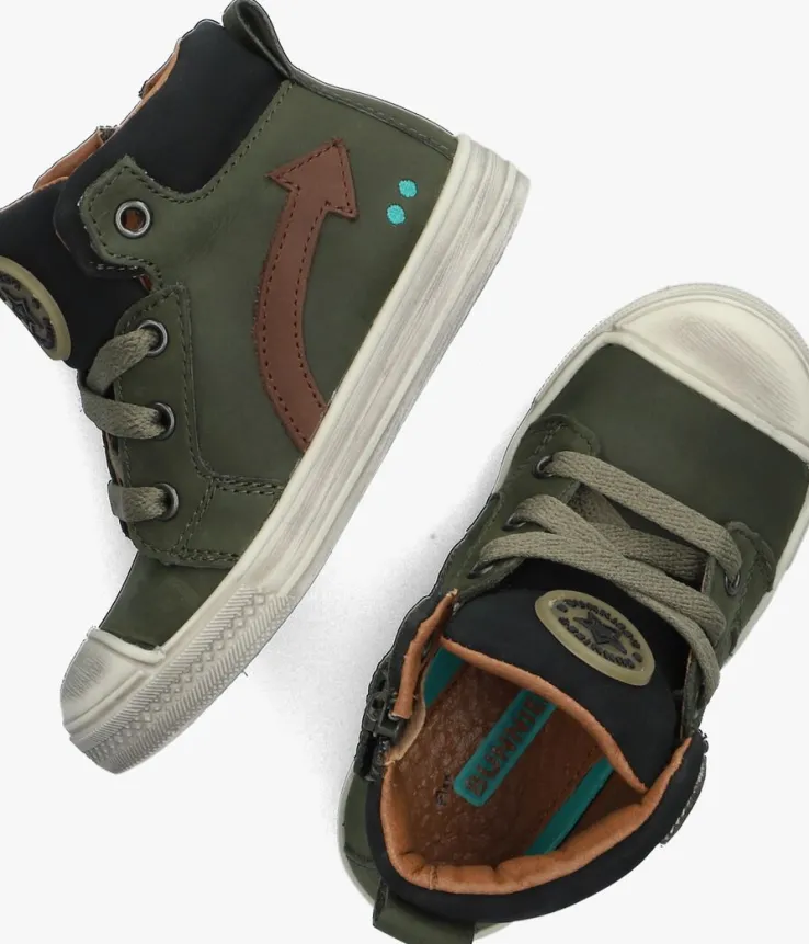 Deze groene hogesneaker FRITS FERMkomt uit de Stap collectie van het merk BUNNIES JR. Dit bijzonder flexibele schoentjeheeft een nubuck bovenwerk met een tong en enkelkraag van technisch mesh. De donkerbruine pijl en de herkenbare stipjes in het mintgroen op de zijkant zorgen samen met het licht groene rubberen merklabel op de tong voor een stoere en speelse look.Dankzij de rubberen neus is het nubuckextra goed beschermd tegen beschadigingen en met behulp van de rits en de aantreklus trek je deze schoen eenvoudig aan bij je kleintje.Het binnenwerk is van leer en met hetuitneembarevoetbed kun je goedzien of je kindje de juiste maat draagt. De zool is gemaakt van rubber en heeft een stootrand op de neus en een gripvast ruitjesprofiel.