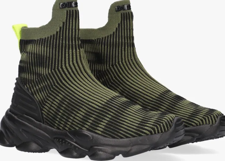 Ga voor comfort met deze super licht van gewicht hoge sneakersSERENDIPITY SNEAKERvan het merk DIESEL. De buitenkant is gemaakt van groen met textiel in de vorm van een sportieve sok met een hoog elastisch vermogen. De hielcap heeft een extra rubberen hielinzet met merkreliëf ter ondersteuning van de hiel. Op de achterkant is een neon geel label bevestigd met aantreklus waardoor aan-en uitrekken kinderspel wordt. Het binnenwerk is uitgevoerd in textiel en heeft een vast voetbed. De lichtgewicht rubberen zool heeft speelse vormen en een gripvast profiel.Draag ze met veel zelfvertrouwen op het schoolplein en laat je unieke stijl zien.