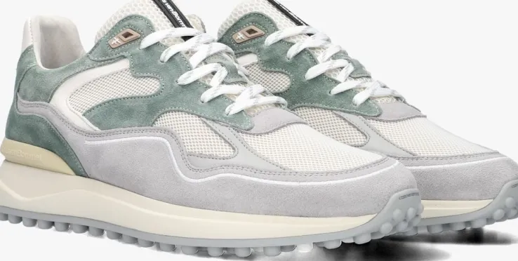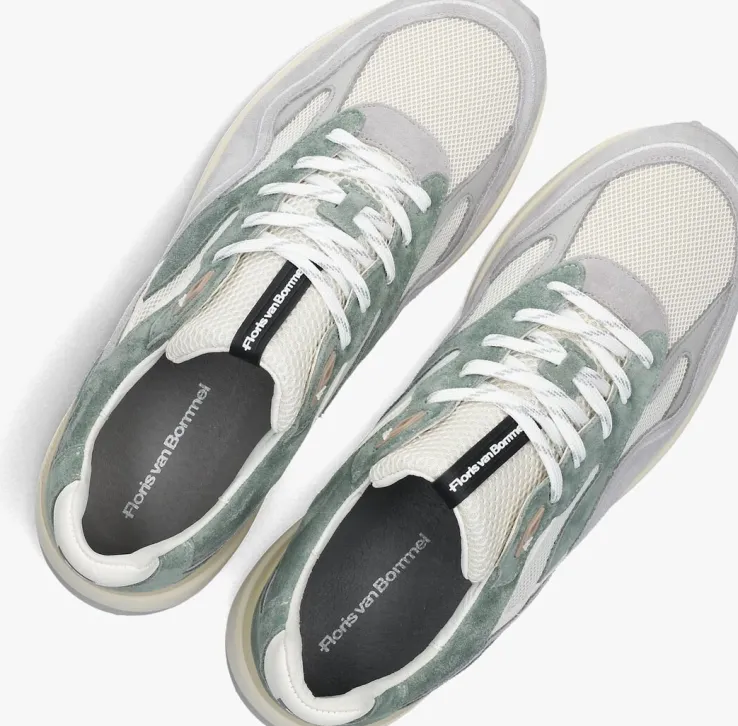 Deze lage sneaker SFM-10159 van FLORIS VAN BOMMEL is gemaakt van wit leer met verschillende overlays van wit leer en grijs met groen suède. Opvallend is de tong van geweven textiel, de witte leren hielcap met merkreliëf, de creme kleurige hielstabilisator en het rubberen merklabel op de tong en veterringen. De voering is gemaakt van leer en het dempende voetbed is uitneembaar. De witte, oplopende zool is gemaakt van rubber en de grijze loopzool heeft een noppenprofiel. Combineer ‘m onder een leuke jeans!
