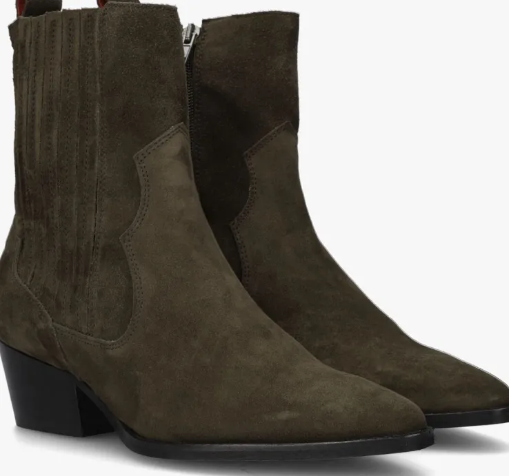 Comfortabele fashion met een stoere en trendy look en van hoogwaardige kwaliteit. Dat zijn deze fijne cowboylaarzen R18100 uit de collectie van het merk HABOOB. De buitenkant is gemaakt van donkergroen suède. Mooie details zijn de decoratieve overlays op de wreef en aan de hiel metdoorgestikte biezen. Het binnenwerk heeft een leren voering met een comfortabel vast voetbed. Een leuk detail is de aantreklus met rode leren binnenvoering. Dankzij de elastische inzet aan de schacht in combinatie met de ritssluiting trek je dit laarsje gemakkelijk aan en uit. De rubberen zool heeft een fijn profiel maar zorgt wel voor een goede grip en stabiliteit. Combineer ‘m onder talloze outfits want deze boot is een absolute aanvulling voor je garderobe! Hakhoogte is bijna 6 centimeter en de schachthoogte is 17 centimeter, gemeten bij maat 38.