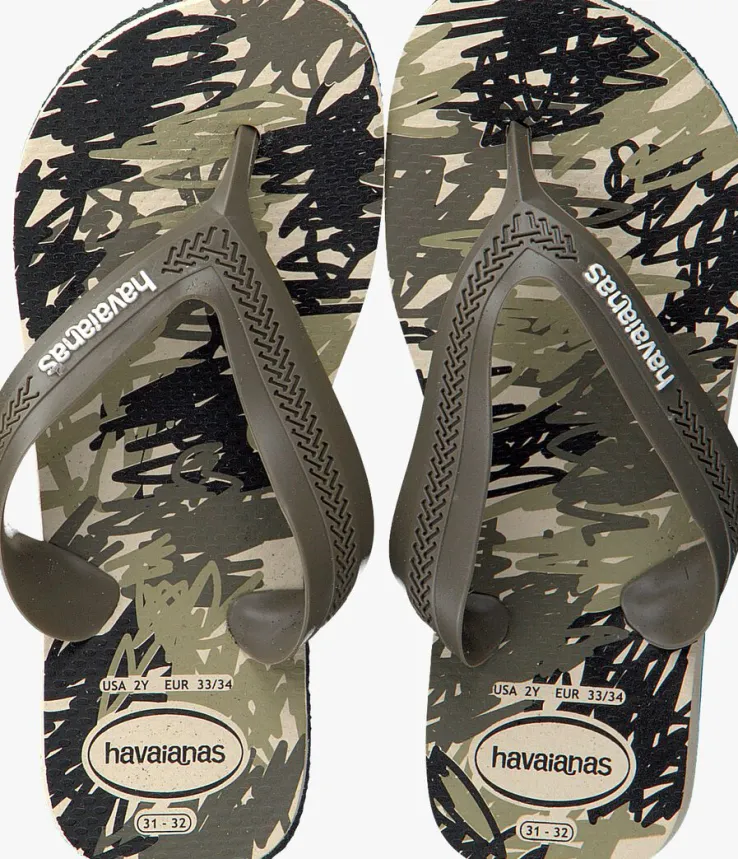 Een absolute zomer must-have van het Braziliaanse merk Havaianas; dat is deze zomerse KIDS MAX TRENDslipper. Dit stoere exemplaar heeft donkergroenebandjes met demerknaam in reliëf en een kras print in camouflage kleuren op het voetbed. De slipper is comfortabel, duurzaam, lichtgewicht, anti-slip, hittebestendig én waterresistant. Wat wil je nog meer? Dat de zon schijnt en jouw kindze de hele dagkan dragen natuurlijk!