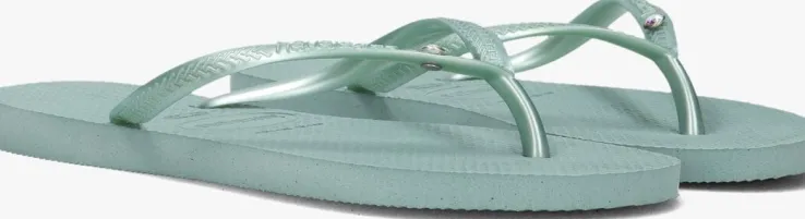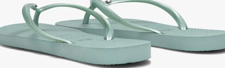 Het meest iconische model van het Braziliaanse merk HAVAIANAS in een vrouwelijk jasje; dat is deze zomerse SLIM CRYSTAL SW II slipper. Dit groene exemplaar heeft dunne bandjes met reliëf merkopdruk en maakt hem extra vrouwelijk door het strass steentje voor een extra feminin look. De slipper is comfortabel, duurzaam, lichtgewicht, anti-slip, hittebestendig én waterresistant. Wat wil je nog meer? Dat de zon schijnt en je ze de hele dag kan dragen natuurlijk!