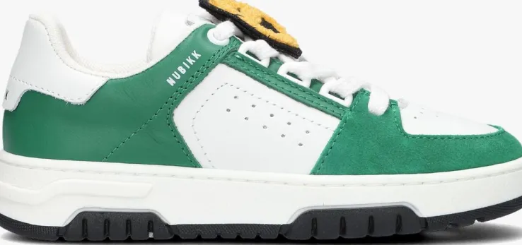 Hoe tof zijn deze lage sneakers BASKET BUXTON JR van het bekende merk NUBIKK! Dit model is uitgewerkt in wit gladleer met leren en suède overlays in een stoere groene kleur. De schoen is extra cool door de perforaties op de zijkant en neus, de witte veterlusjes, het merkembleem op de tong, de zwarte merkopdruk op de hiel en de afneembare smiley van stof aan de veter. De voering is gemaakt van textiel en het leren voetbed is uitneembaar. Je kleine man kunt met dit model spelen, rennen en klimmen door het goede grip in de zwarte loopzool.