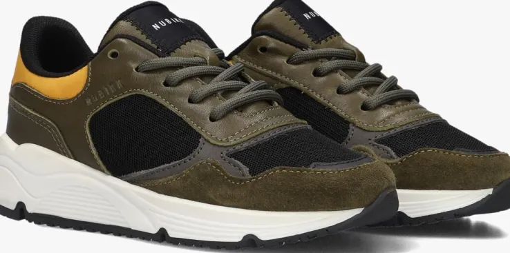 Deze te gekke groene sneaker DUSK MARINE JR met toffe details komt uit de collectie van het merk NUBIKK. De schoen is gemaakt van hoogwaardig suède met panelen van glanzend mesh op de neus en zijkant en kenmerkende NUBIKK elementen. Zo is de tong gesierd met een textiel merklabel met opvallende zigzag stiksels en is op de zijkant merkreliëf te vinden. Op de achterkant bevindt zich de herkenbare textiele aantreklus. Het binnenwerk is gemaakt van mesh textiel voor een optimaal ademend vermogen en een dempend uitneembaar voetbed van leer. De schoen heeft een uniek uiterlijk dankzij de chunky zool van ExtraLight rubber en de zwarte loopzool beschikt over een grof profiel voor onwijs veel grip tijdens al je avonturen. Draag deze sneaker lekker sportief onder een jeans of combineer ‘m met een chino.