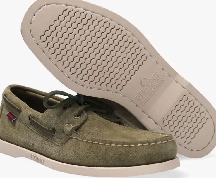 Eind jaren ’60 kwam er vanuit het matrozen leven een vraag naar een functionele lederen bootschoen. Het merk SEBAGO, wat toen al jaren lange ervaring had, sprong hierop in en lanceerde in 1970 zijn eerste Docksides oftewel bootschoen. Tot op de dag van vandaag worden deze schoenen, met historische status, met de grootste zorg en ambacht hand genaaid en afgewerkt. Dat zie je terug in ieder model van dit authentieke merk. Door het gebruik van diverse hoogwaardigematerialen en kleuren spelen ze in op de trends van nu. Dit modelPORTLAND is aan de buitenkant uitgevoerd in groen suède en heeft de bekende stiksels over de neus meteen leren veter rondom de enkel en vetersluiting. De voering is gemaakt van leer met een vast comfortabel voetbed met perforaties en de rubberen zool heeft een gripvast golvend profiel. De zool is volgens de Goodyear maakwijze bevestigd aan de zool, dat wilt zeggen dat de zool van binnenuit is vastgestikt waardoor deze extra sterk en duurzaam is.