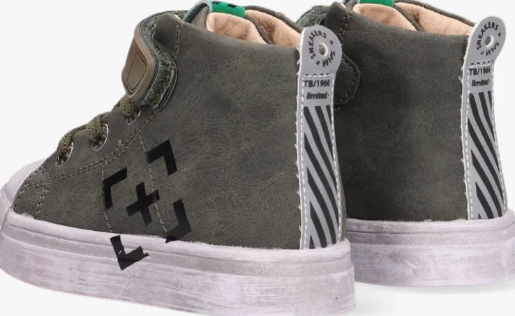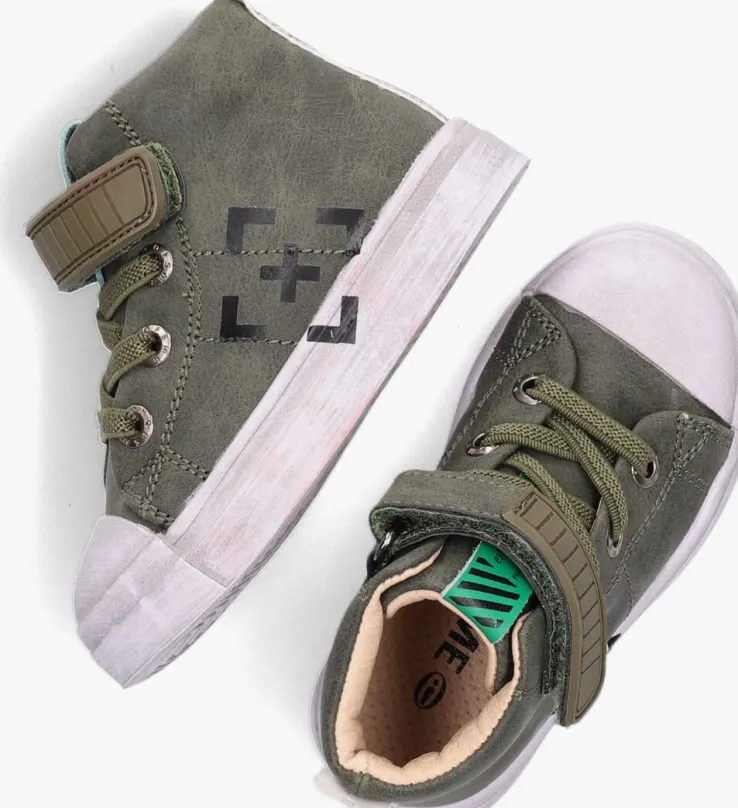 Wat een stoere sneakers van Shoesme! Dit hoge model SH21W024 is volledig uitgevoerd in leer en heeft een uitneembaar voetbed. De buitenkant is gemaakt van gemaakt van groen leer en heeft een opvallend grijs label op de hiel. Op de neus zit een extra stootrand van rubber zodat de schoentjes langer mooi blijven tijdens het spelen. Een extra leuk detail aan dit schoentje is dat hij een ‘used look’ zool heeft waardoor de rubberen zool niet helemaal wit is. Aan- en uittrekken wordt kinderspel met de klittenbandsluiting en de aantreklus op de enkel. Het binnenwerk bestaat uit zacht en soepel met een uitneembaar voetbed wat erg comfortabel aanvoelt voor kleine voetjes. Draag deze stoere schoentjes met veel zelfvertrouwen en ga op avontuur.
