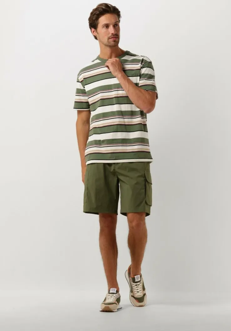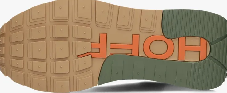 Stap in stijl met de RHODES lage sneakers van THE HOFF BRAND. Deze groene schoenen zijn perfect voor heren die op zoek zijn naar comfort en een trendy uitstraling. Dit model is uitgevoerd in groen textiel met panelen van beige suéde. Opvallend zijn de oranje details die terug te vinden zijn op de hiel, tong en veterklep. Op de hiel en tong is het welbekende merkreliëf en logo terug te vinden. De lichtgewichte zool heeft een gripvast profiel waarmee je heel de dag door heerlijk kunt wandelen. Combineer ze met een casual jeans en een basic t-shirt voor een relaxte look, of draag ze onder een chino en een overhemd voor een meer geklede outfit. Of je nu een dagje gaat shoppen of een terrasje pakt met vrienden, met de RHODES sneakers ben je altijd on-trend. Laat je stijl spreken met deze must-have schoenen!