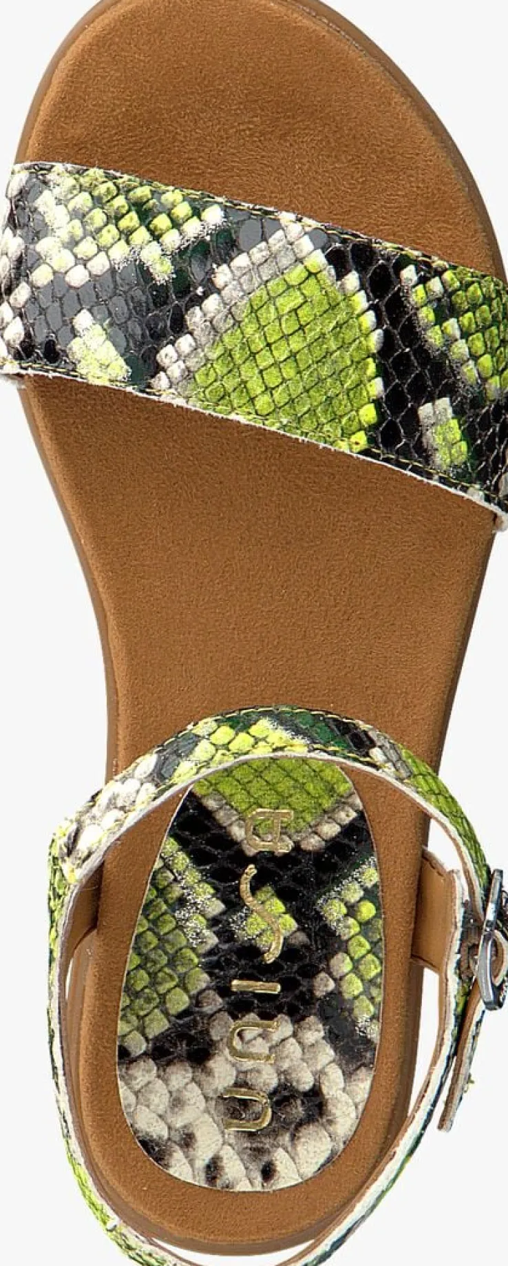 Laat de zon maar stralen want met deze gele sandalen LIRITA van het merk Unisa ben jij er helemaal klaar voor! Het bovenwerk is gemaakt van geel lederlook met slangenprint en een zilverkleurige glitterfinishen heeft een brede band over de voet en smalle bandjes met een gespsluiting om de enkel. Het voetbed is uitgevoerd in suèdelook en voelt heerlijk zacht aan. De rubberen zool met mini hakje en fijn profiel zorgt voor veel grip en flexibiliteit.