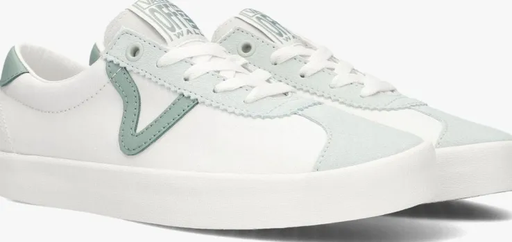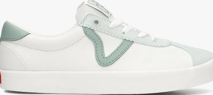 Stap in stijl met de VANS SPORT LOW TRI-TONE lage sneakers voor dames. Deze witte sneakers met groene suède en leren accenten, zijn perfect voor een casual dagje uit of een relaxte wandeling in het park. De sneaker heeft een canvas binnenwerk en een witte rubberen zool met op de hiel het rode merkembleem. Combineer ze met een jeans en een basic t-shirt voor een trendy look. De sneakers passen ook goed bij een sportieve outfit met een legging en een hoodie. Met deze VANS sneakers ben je helemaal klaar voor elke gelegenheid!
