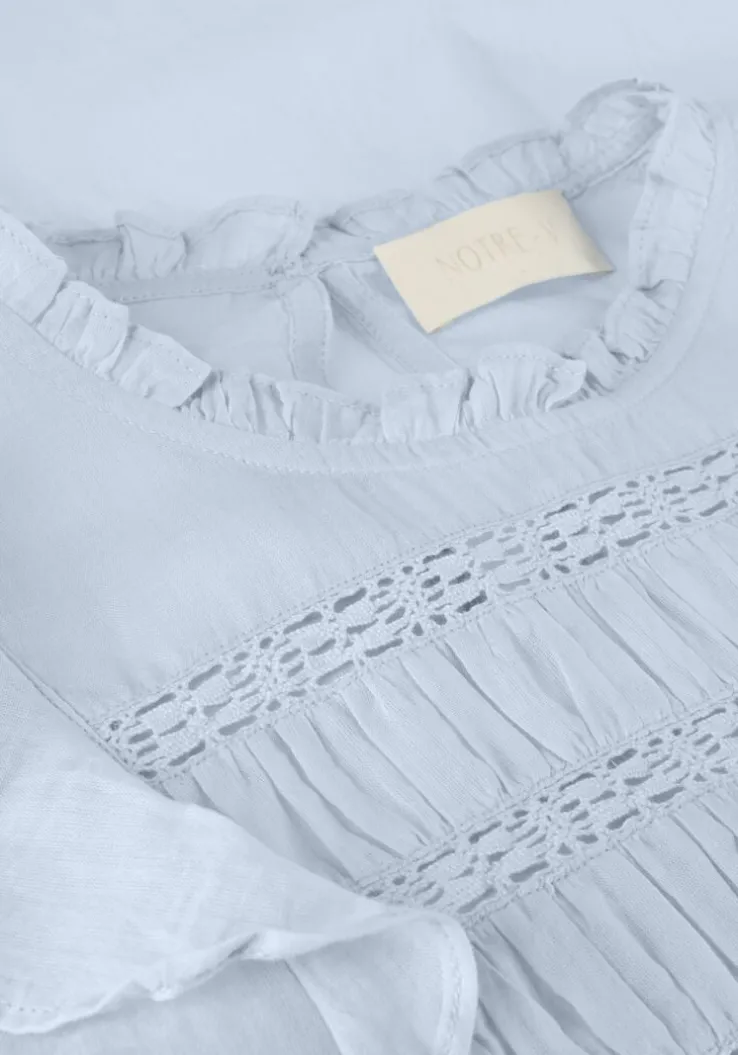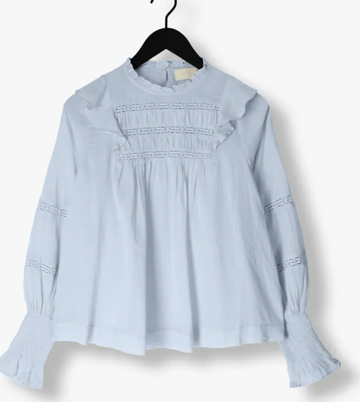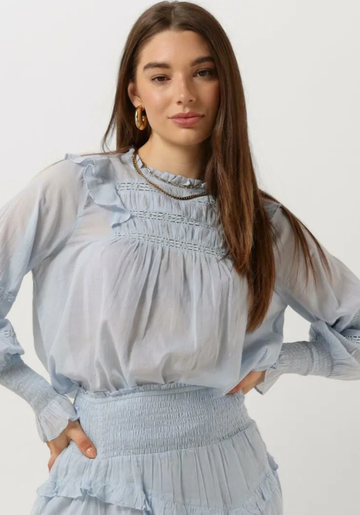 Voeg wat luchtigheid en elegantie toe aan je garderobe met deze prachtige Voile Blouse van het merk Notre-V. De blouse is uitgevoerd in een frisse lichtblauwe kleur en is perfect voor elke gelegenheid. Draag hem casual op een jeans voor een relaxte look of combineer hem met een nette pantalon voor een chique uitstraling. Deze blouse past goed bij een mooie rok of een stijlvolle blazer. Met deze blouse ben je altijd on-trend en straal je zelfvertrouwen uit. Laat je stijlvolle kant zien met deze must-have blouse!